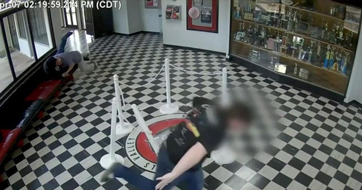 В Оклахоме обнародовали видео из школы, где директор напал на вооруженного парня. Это произошло еще 8 апреля, но запись была показана только сейчас.