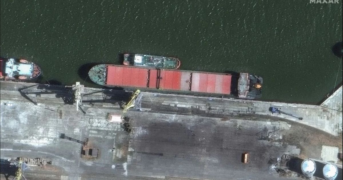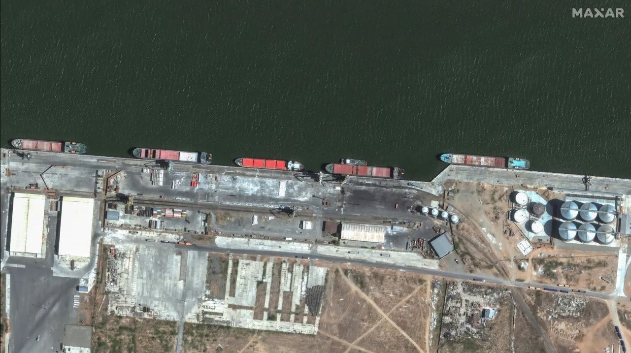 Грузовое судно Port Olya 3 рядом с другими судами в российском порту / © Maxar