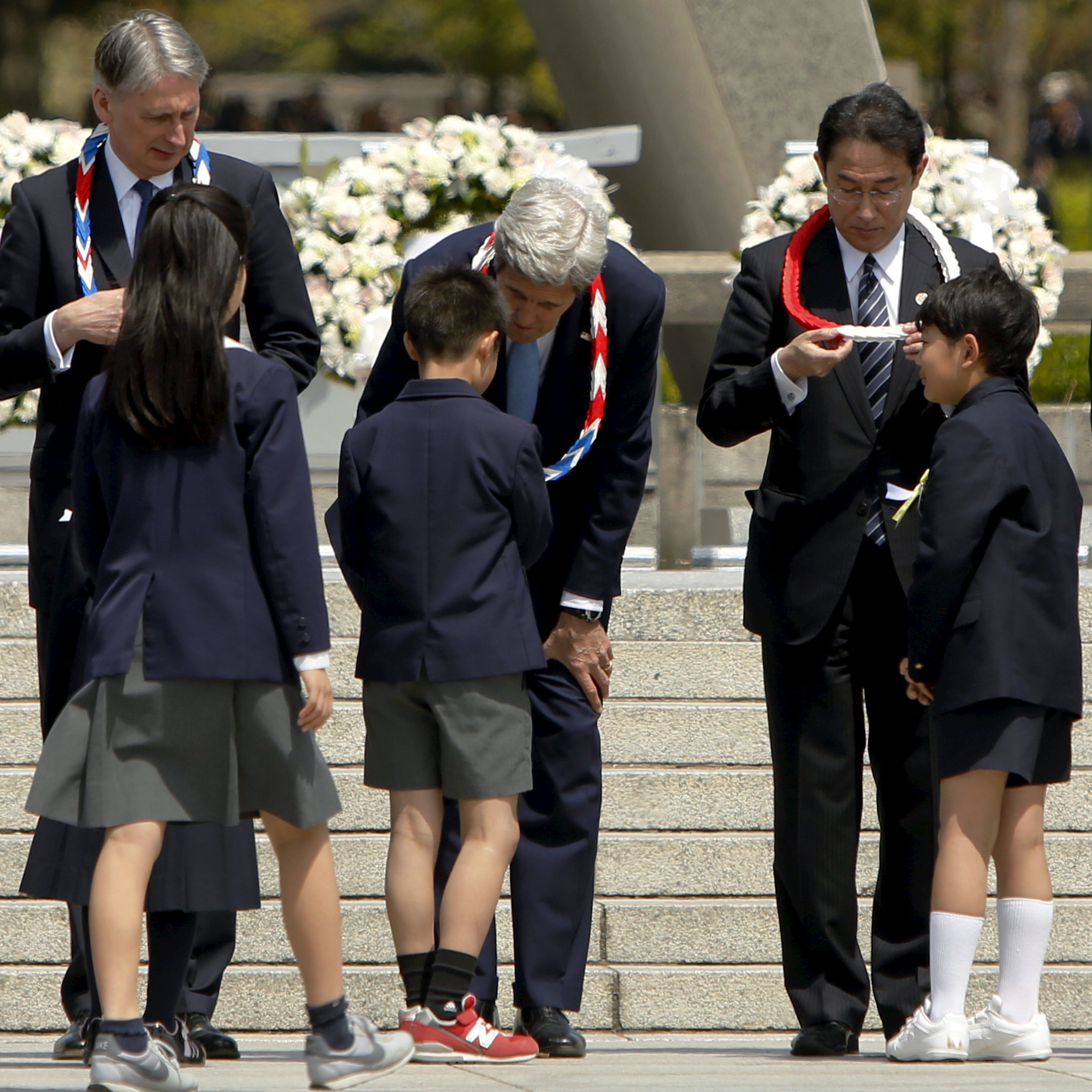 Керри возложил венок в память жертв ядерного взрыва и оставил запись в гостевой книге.