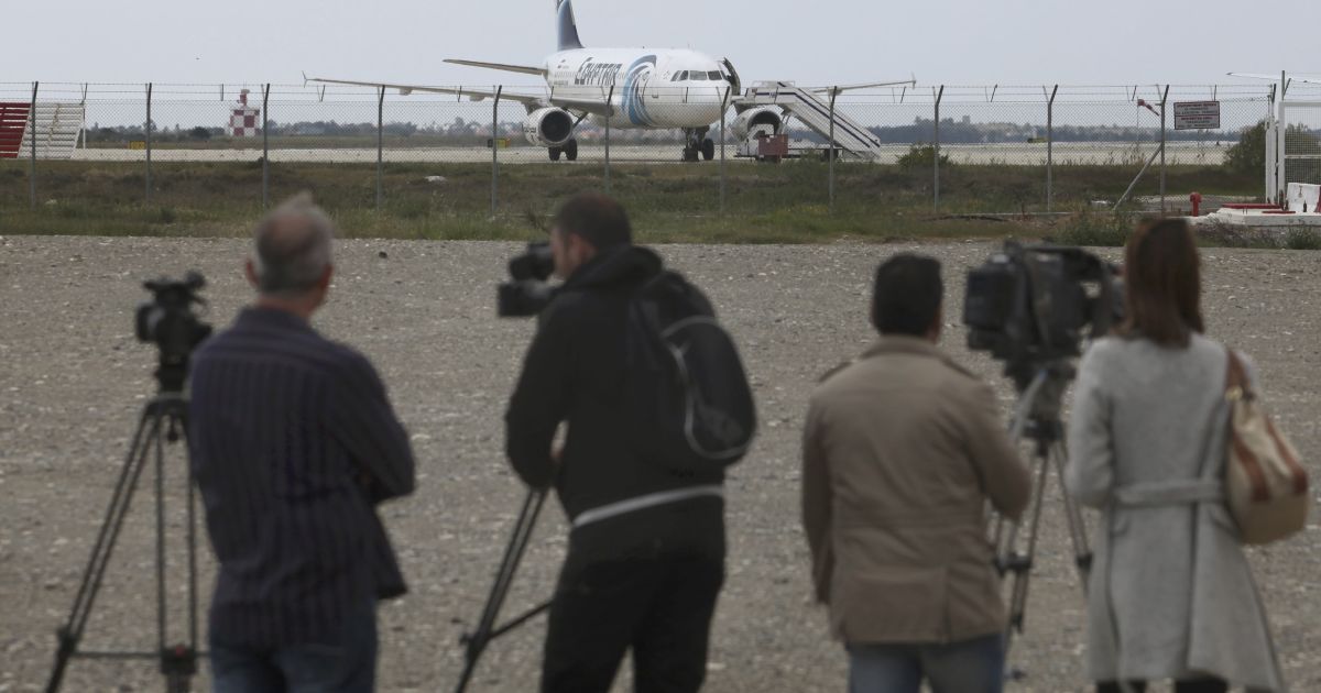 По словам министра, во время полета неизвестный сообщил, что у него есть пояс смертника и потребовал посадить самолет или в Турции, или на Кипре. В итоге экипаж принял решение посадить самолет, который следовал внутренним рейсом из Каира в Александрию, в кипрской столице Ларнаке.