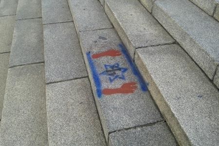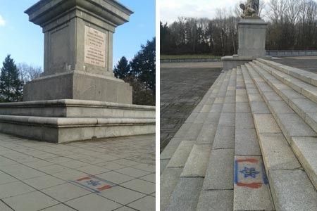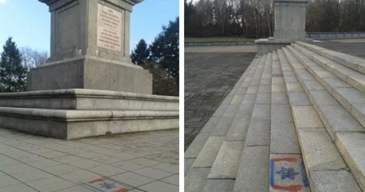 На ступенях возле скульптурной группы и плитах, находящихся по периметру центрального обелиска, неизвестные нанесли более 15 аналогичных изображений в виде фашистской свастики черного цвета, отпечатков стоп красного цвета на фоне государственного флага Израиля.
