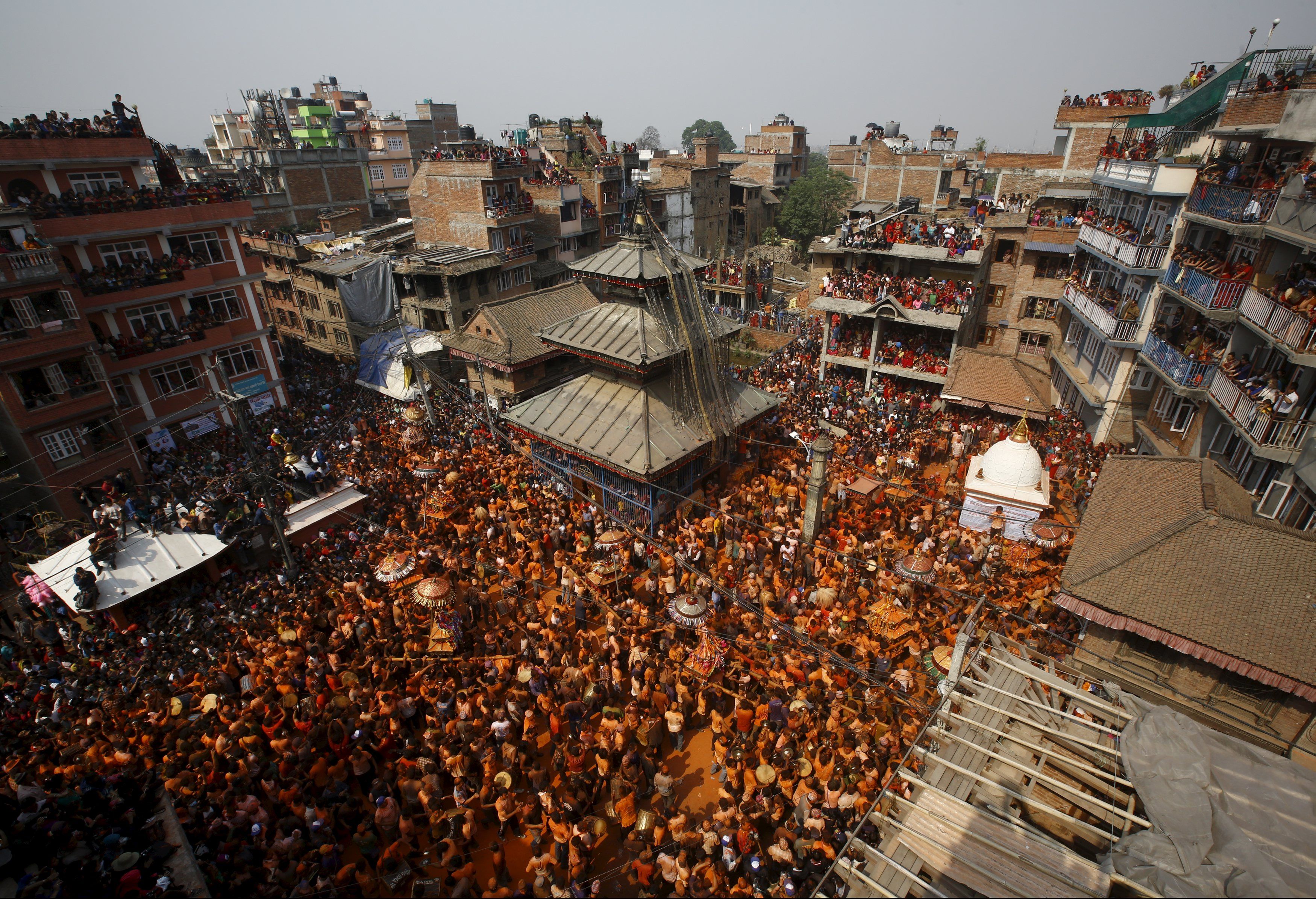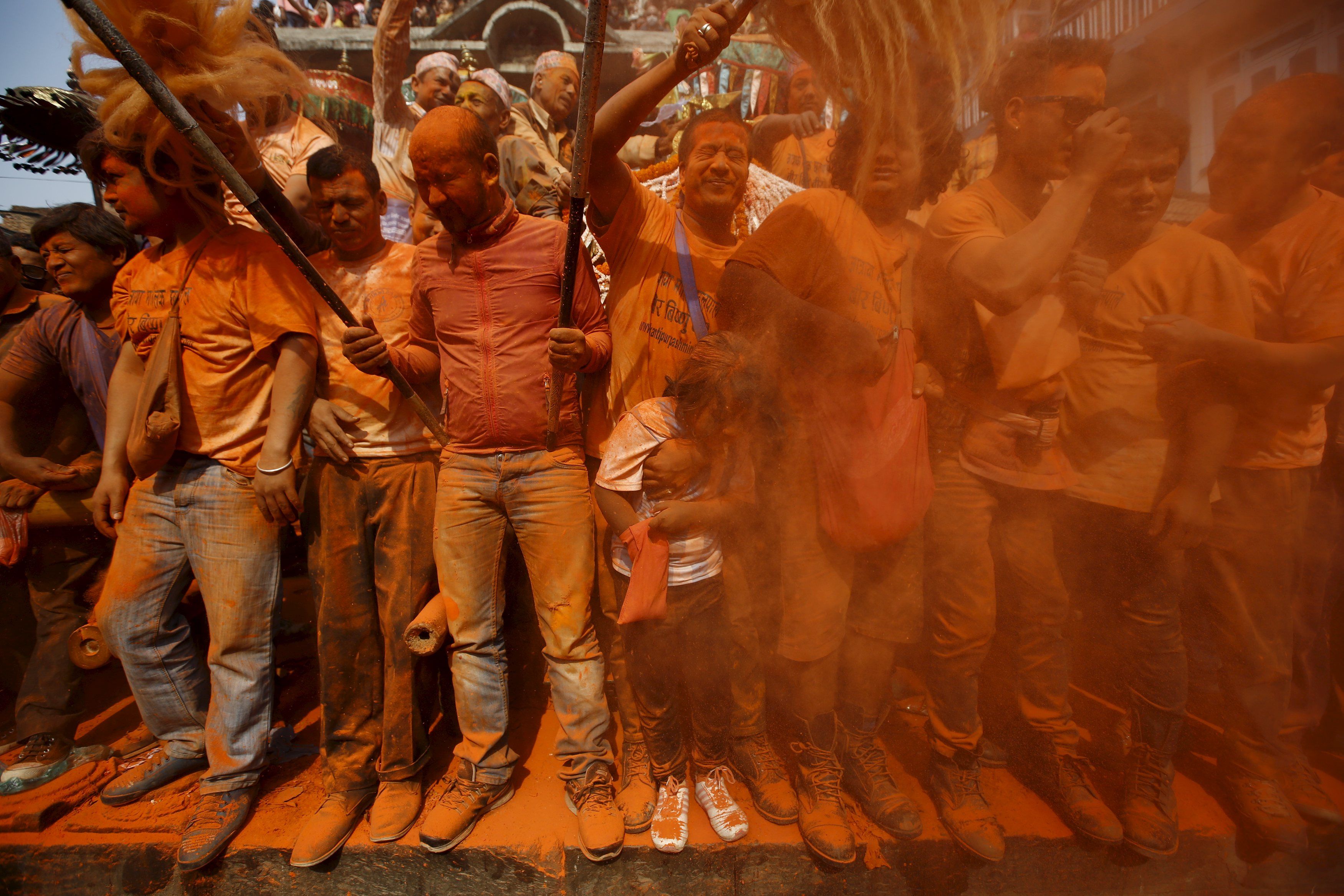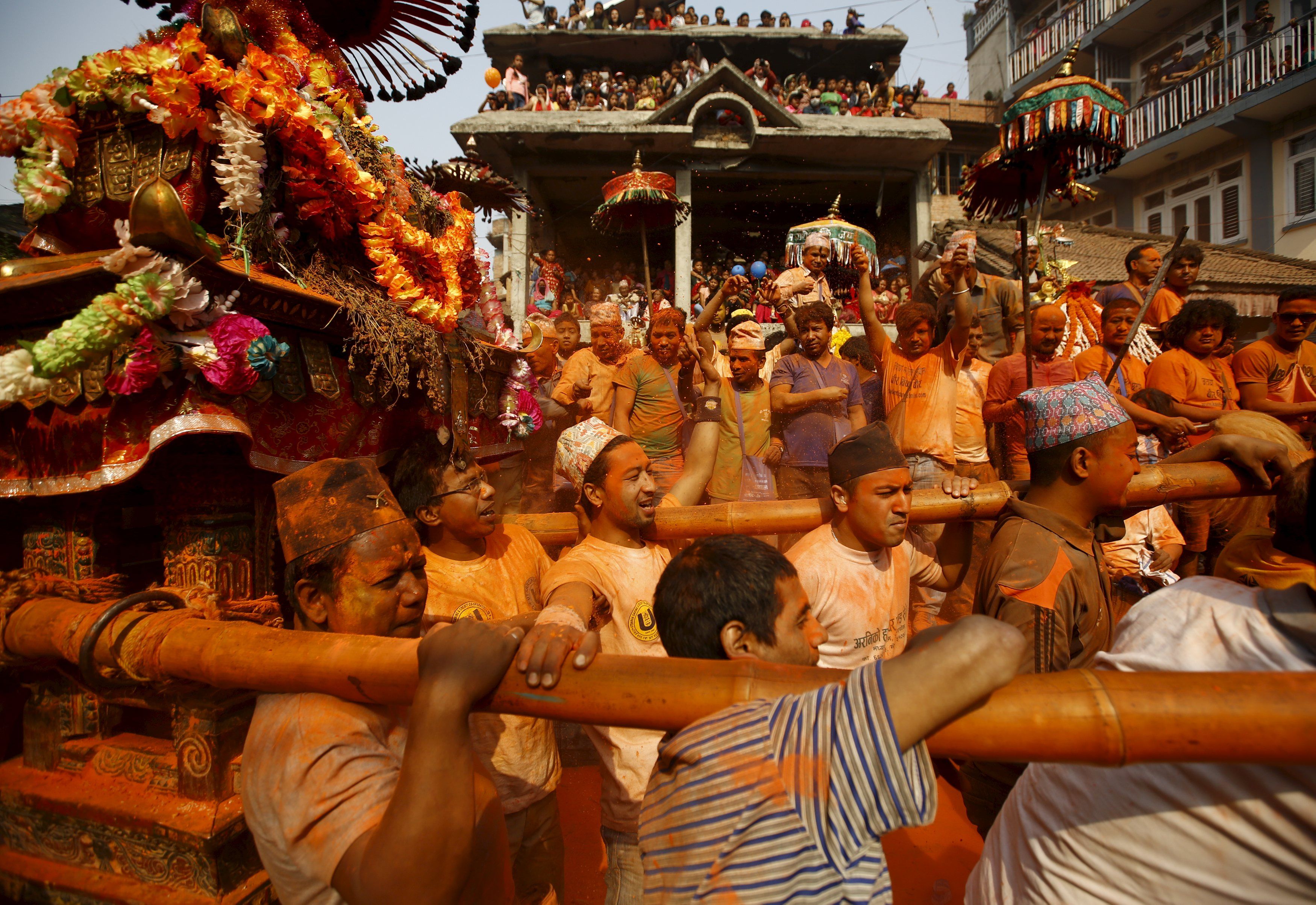 Ежегодно в непальском городке Тхими вблизи Катманду празднуется фестиваль Sindoor Jatra. Люди приветствуют приход Нового года и весны.