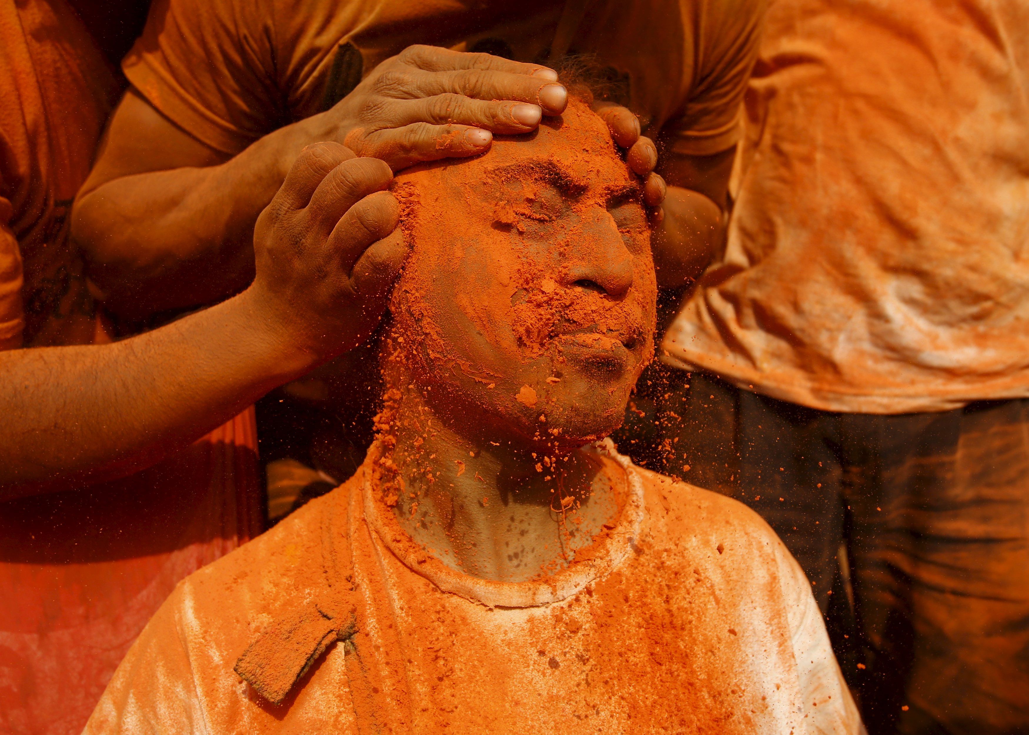 Во время фестиваля все смазываются порошком ярко-красного цвета. Кроме того, по городу проносят изображения богов и богинь. Люди также поют, танцуют и играют на музыкальных инструментах.