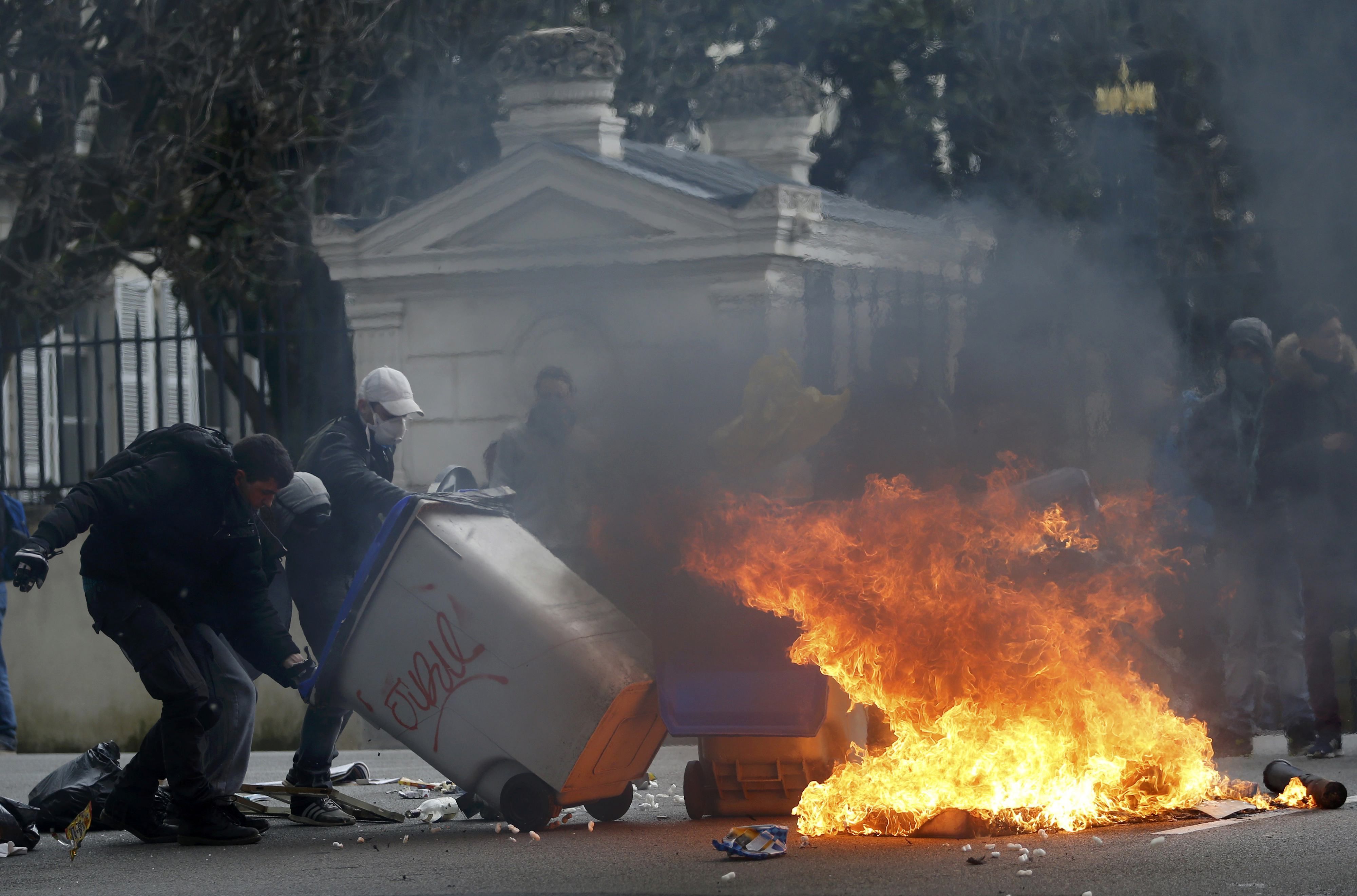 В Париже происходят массовые столкновения между демонстрантами и полицией.