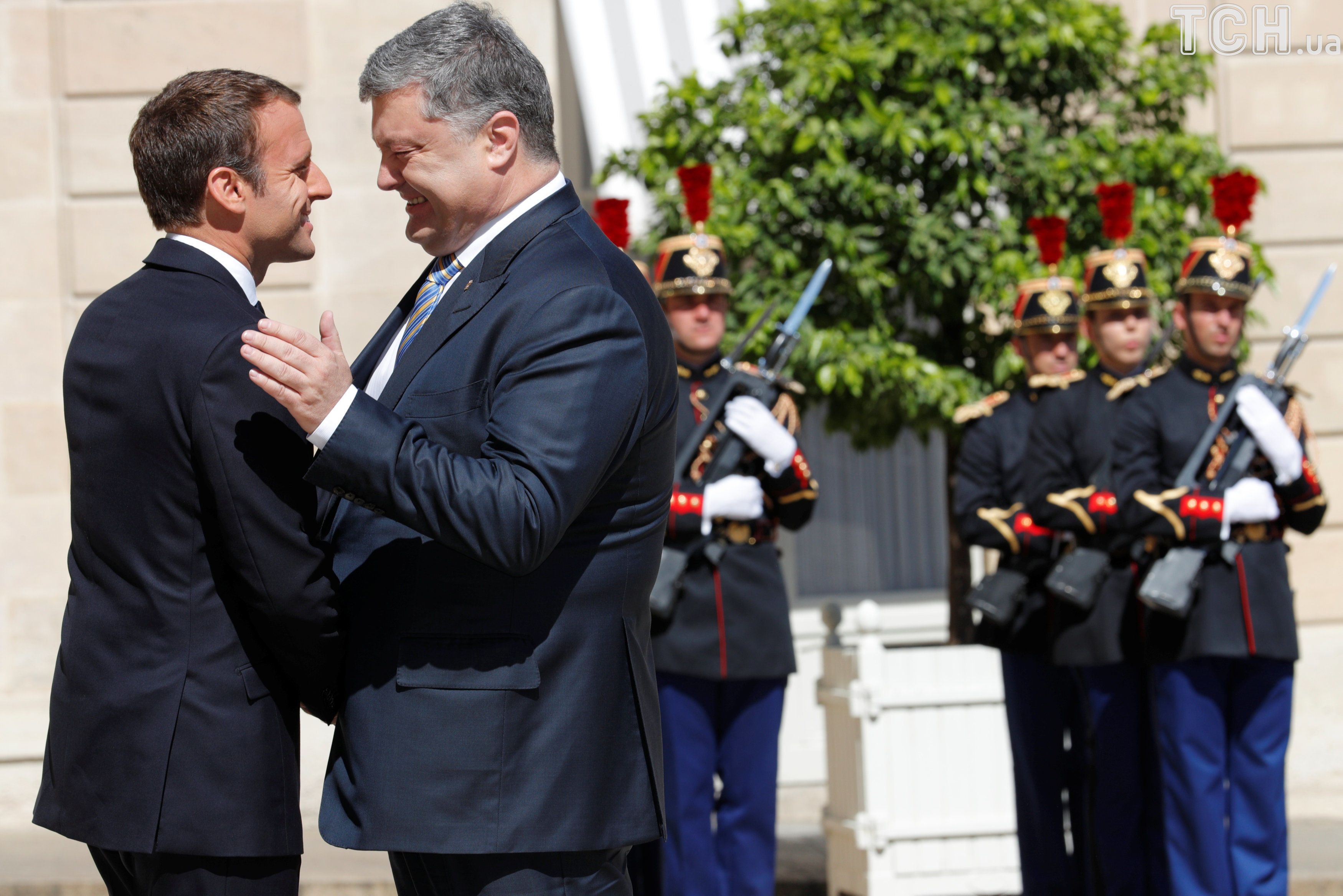 Безудержные эмоции и дружеские объятия. Первая встреча Порошенко и Макрона в фото (9 фото)