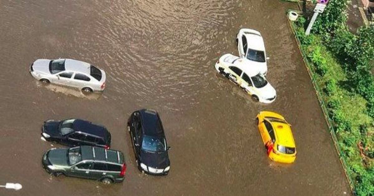 В российском Подмосковье до сих пор разбираются с последствиями мощного ливня. В одном из жилищных комплексов несколько десятков элитных авто оказались залиты сточными водами.