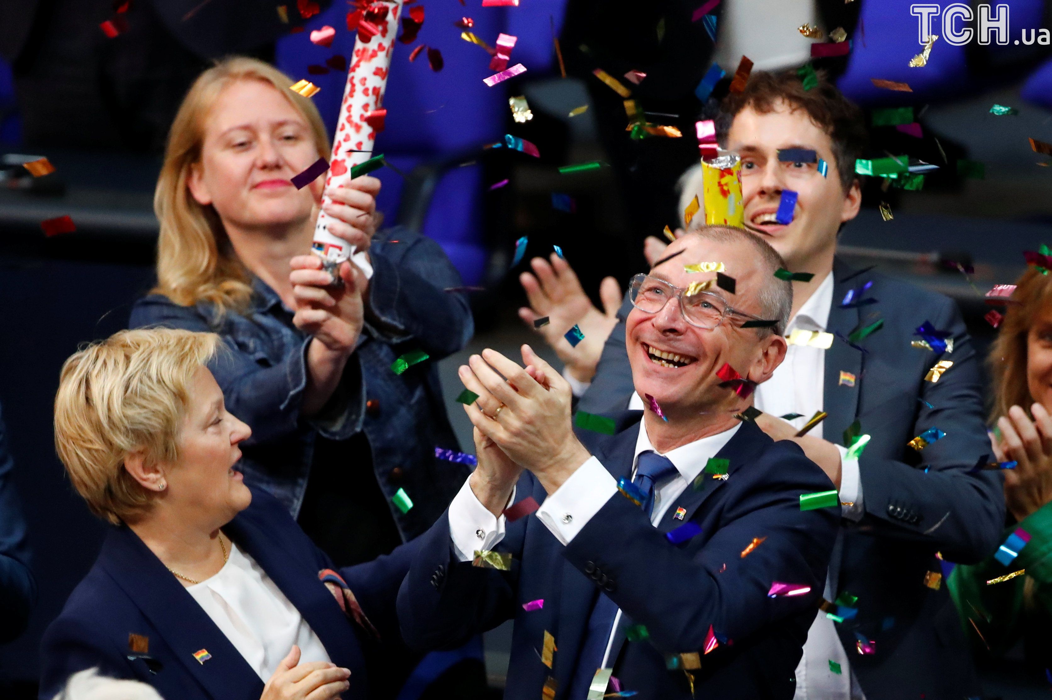 Фолькер Бек из партии "зеленых" празднует одобрение однополых браков. / © Reuters