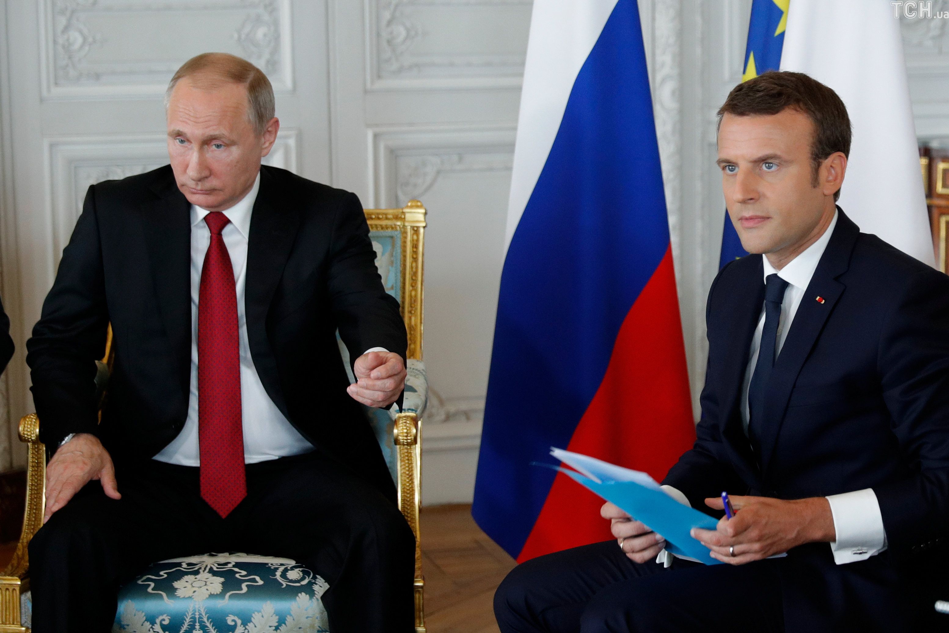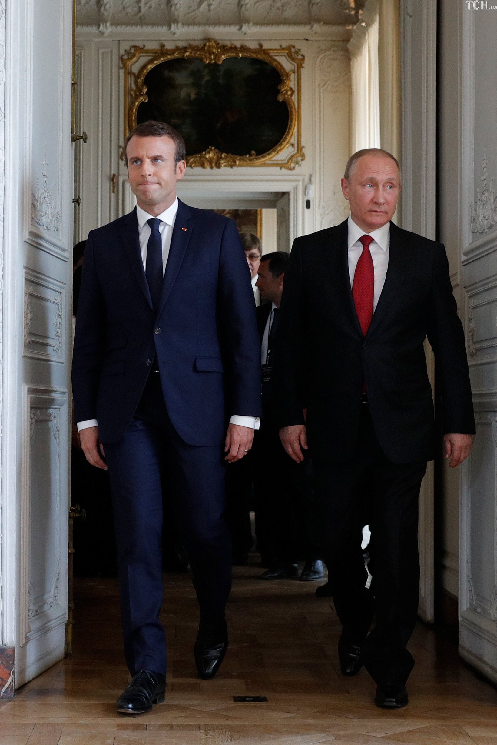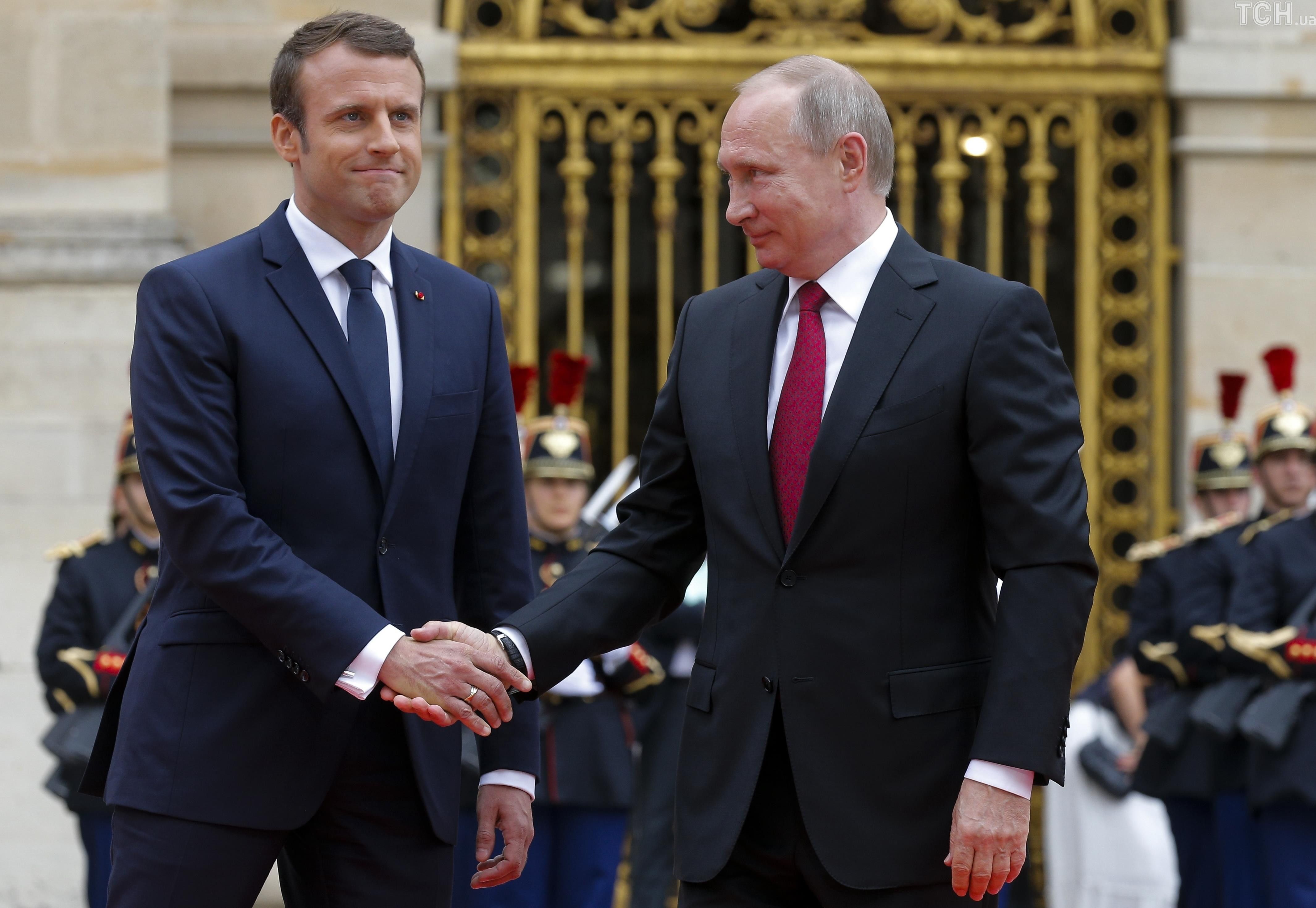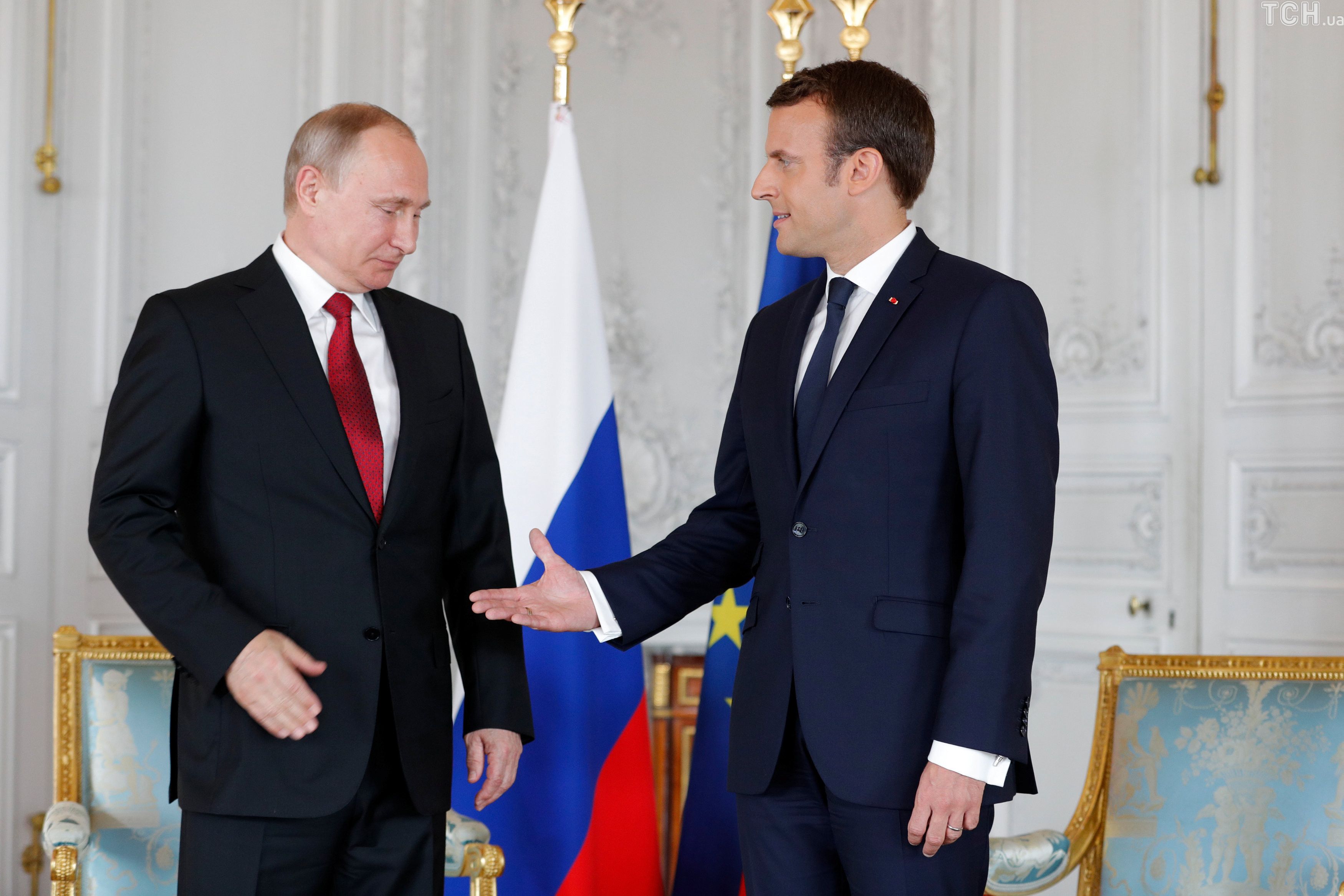 Рукопожатие и неловкие улыбки. Как Макрон встретил Путина в Версале