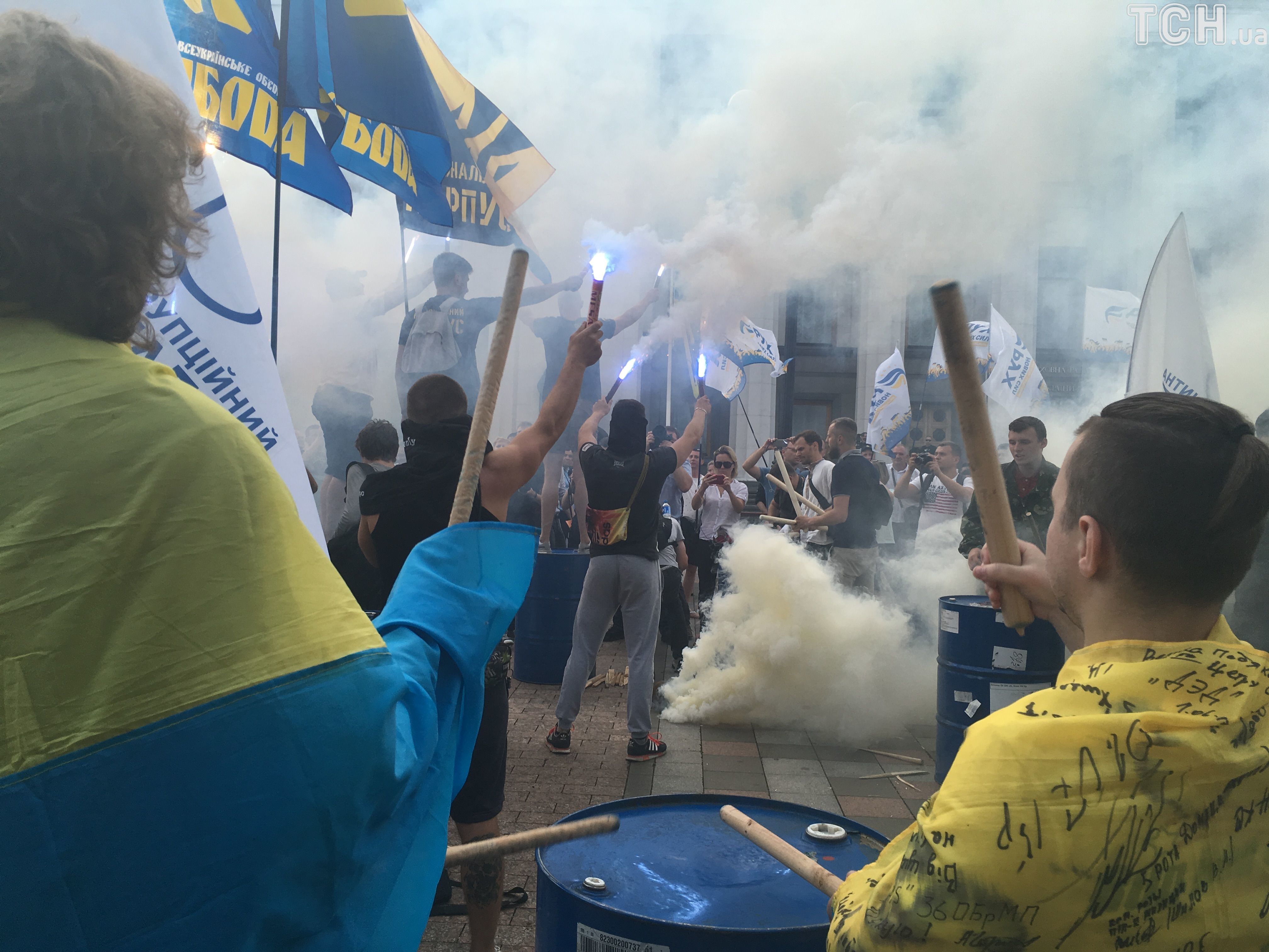 Дым от фаеров и бой в бочки: активисты призывают снять неприкосновенность с нардепов во ВР (19 фото)
