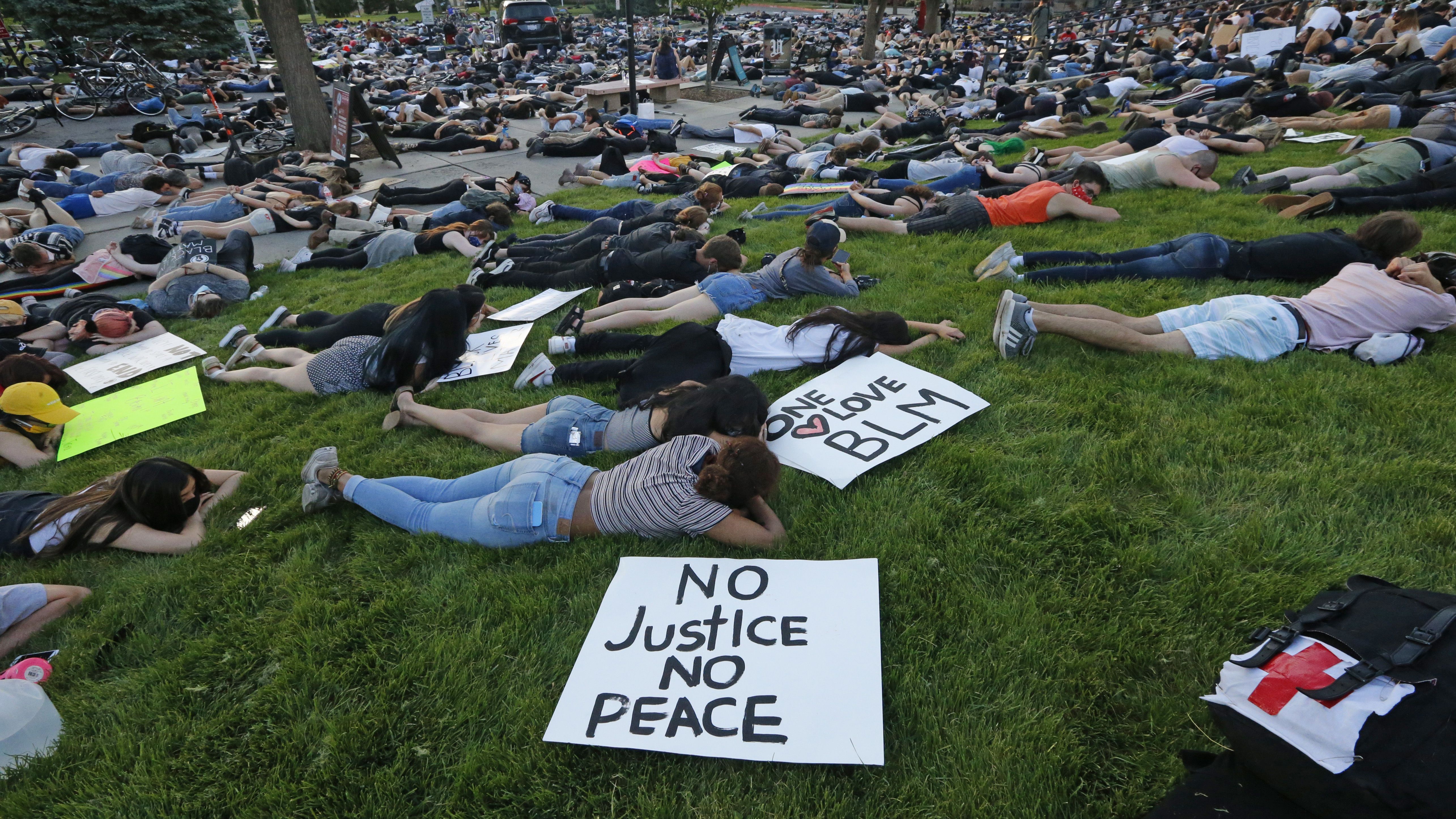 Где-то происходят лежачие протесты: люди лежат, закинув руки за спину, выкрикивая “Я не могу дышать”.