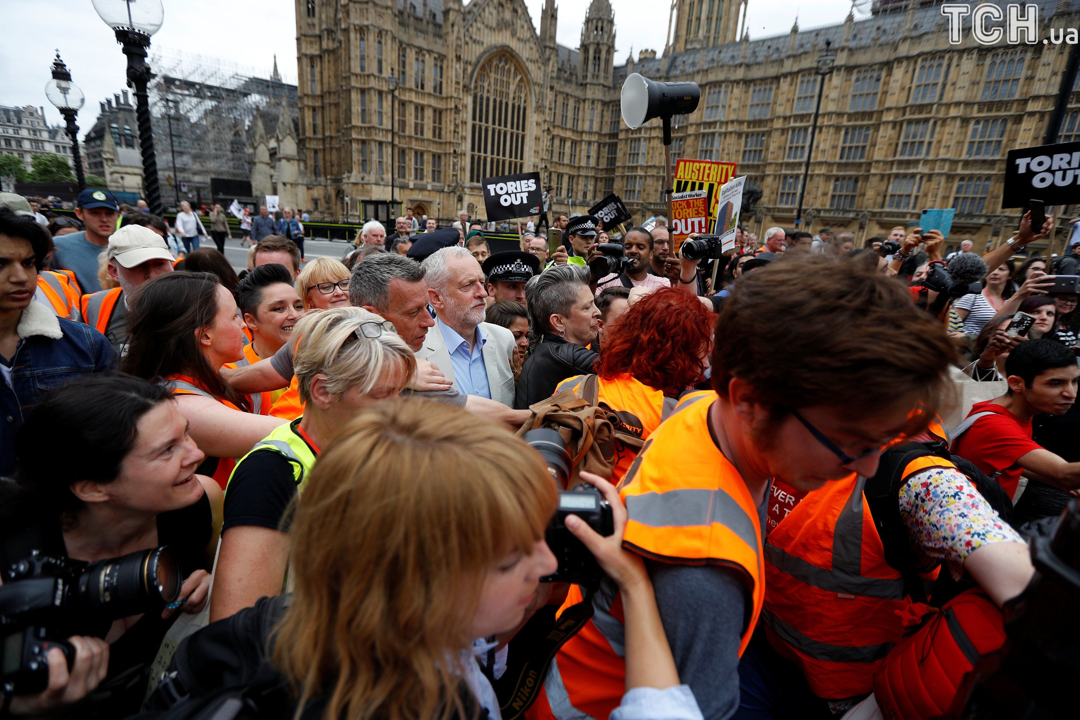 Собравшиеся скандировали "Джереми Корбин!" и "Тори - на выход".