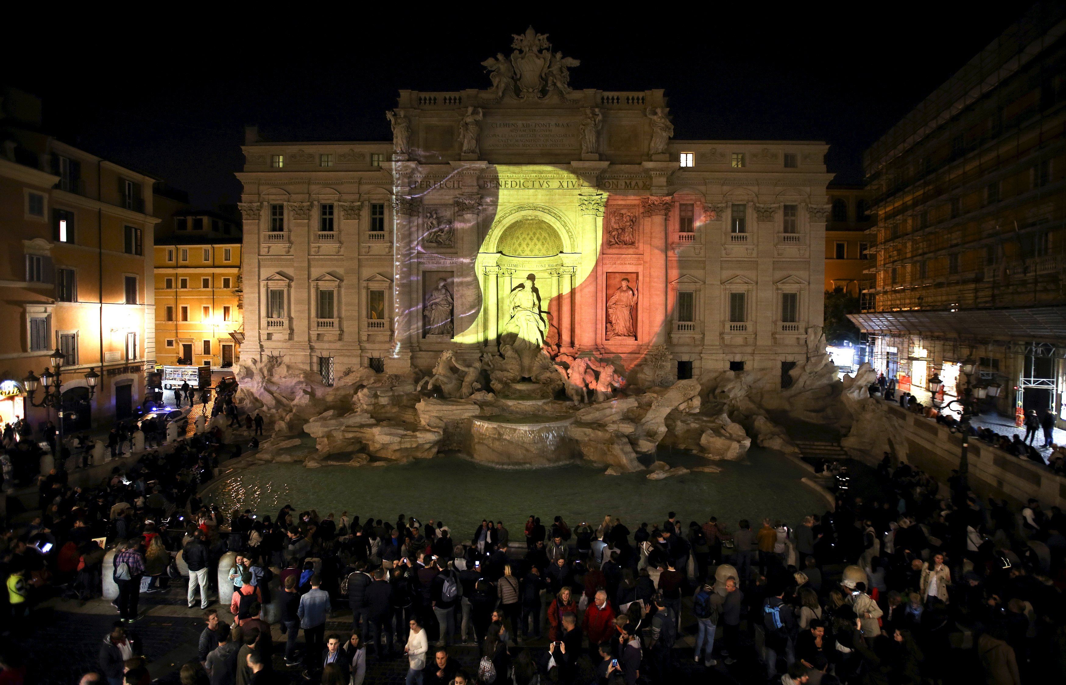 Фонтан Треви в Риме светится цветами бельгийского флага. / © Reuters