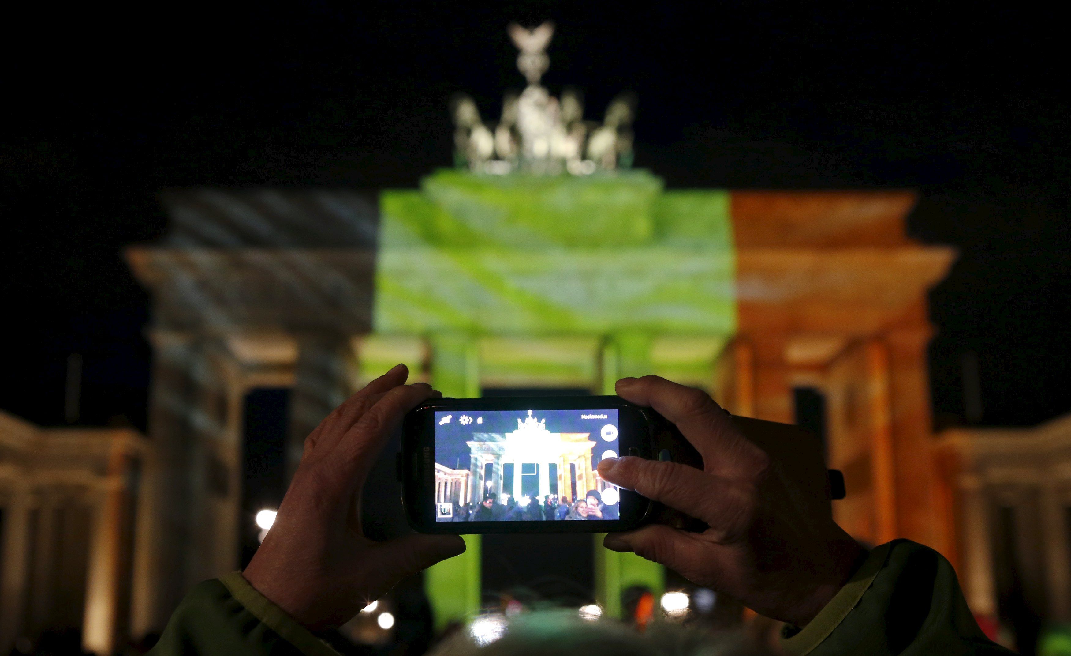 Бранденбургские ворота в Берлине светятся цветами бельгийского флага. / © Reuters
