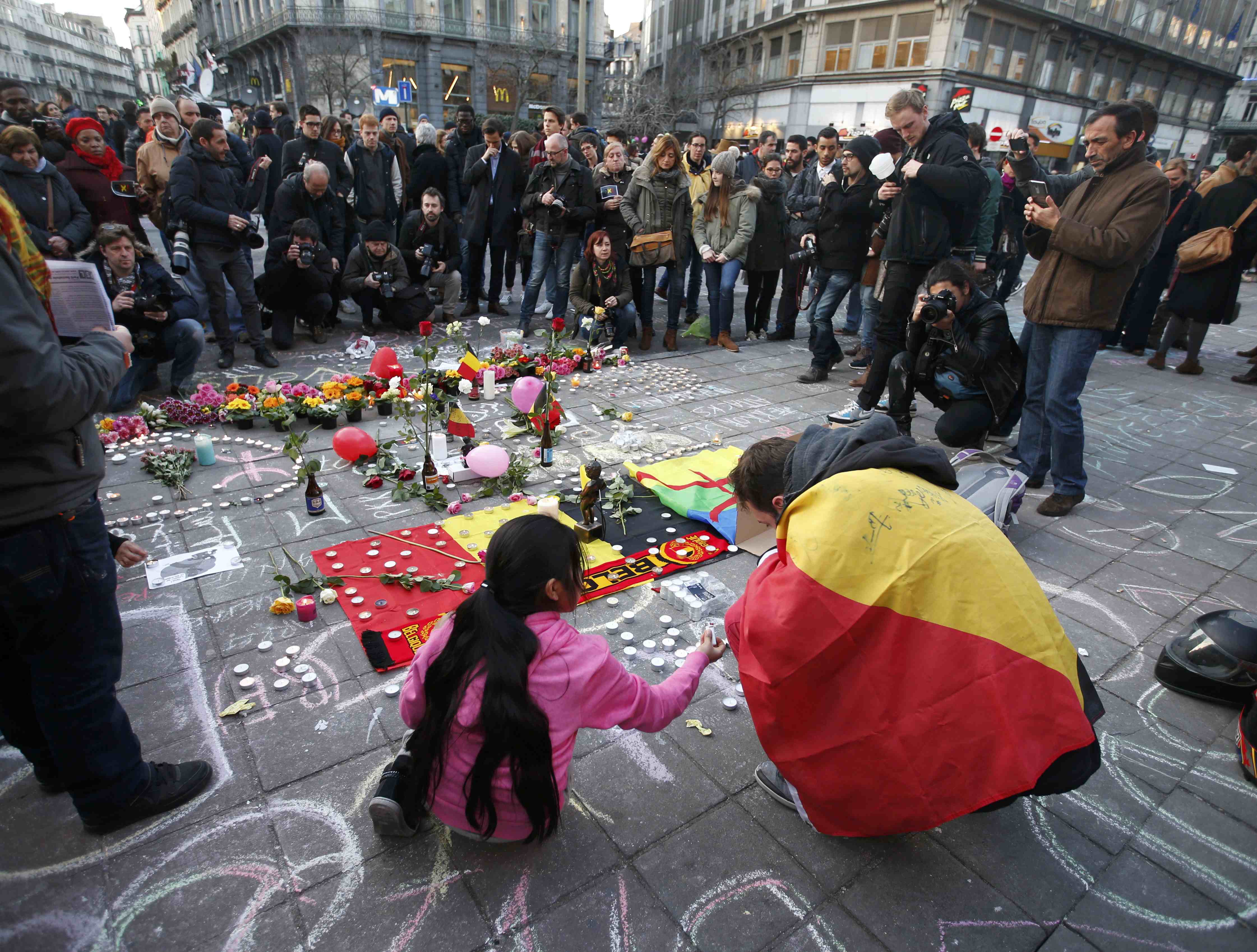 В центре Брюсселя люди собрались, чтобы почтить память жертв теракта. / © Reuters