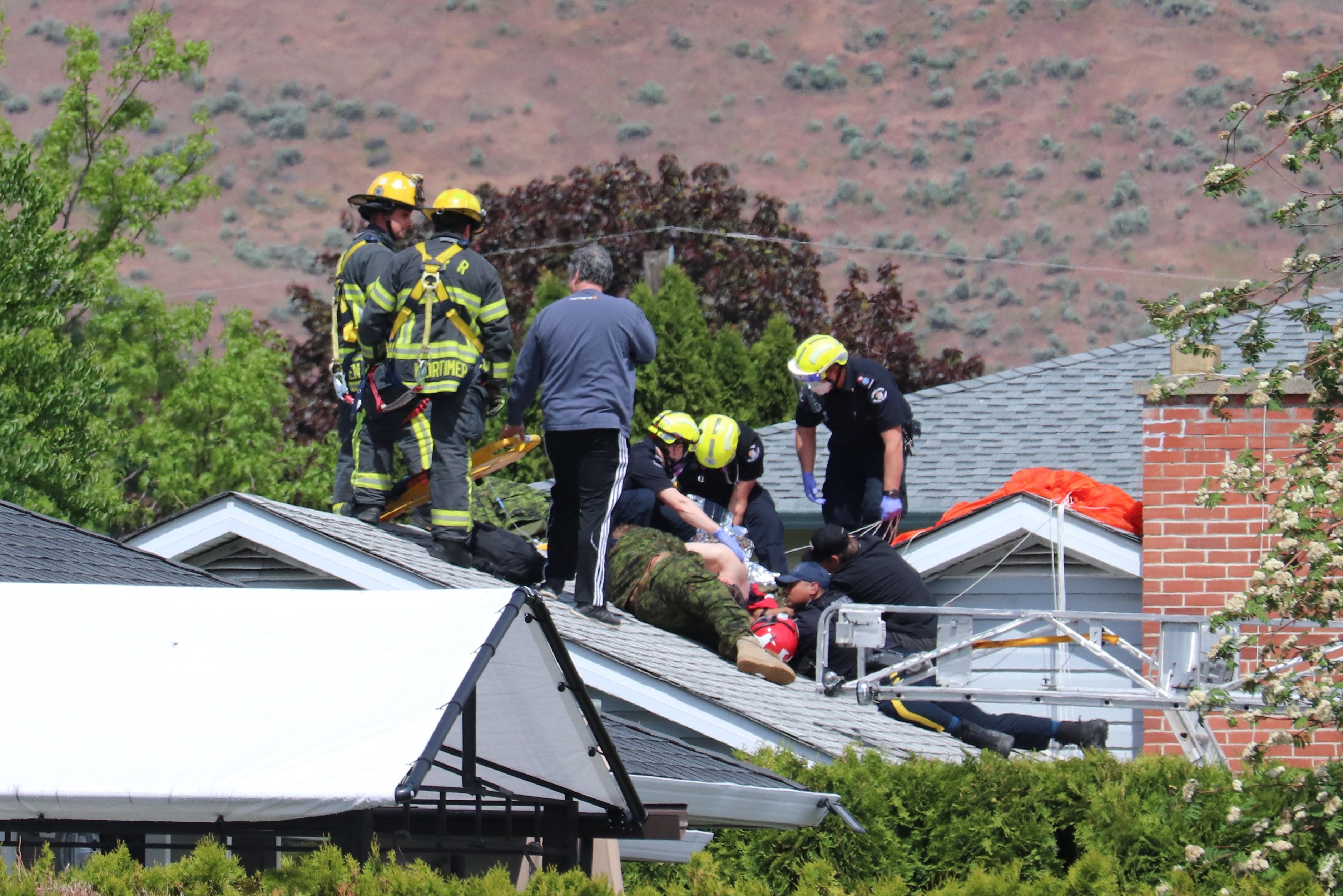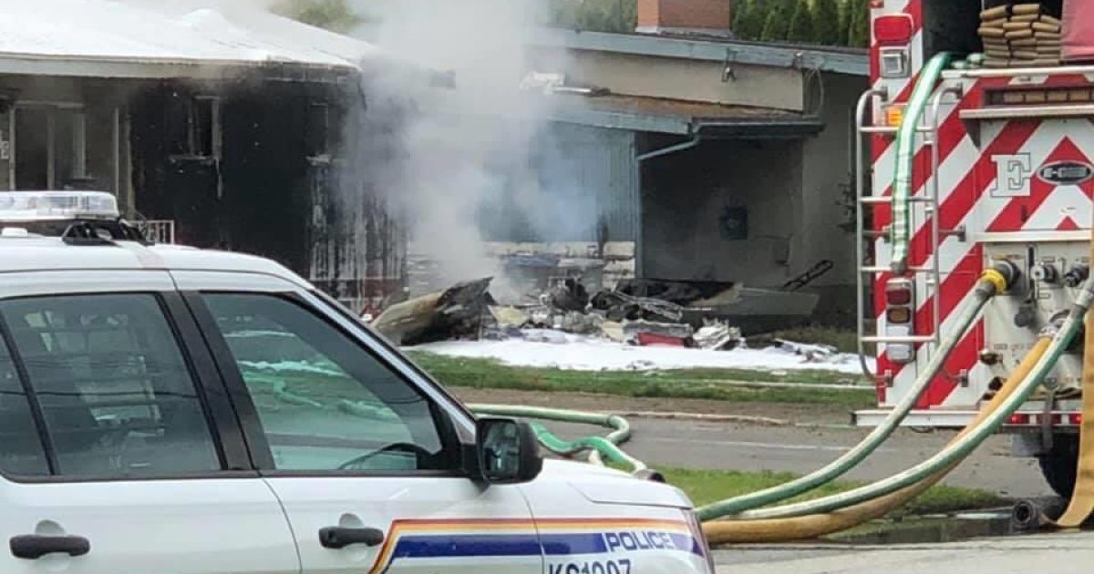 Отмечается, что после падения на двор жилого дома самолет канадских сил The Snowbirds вспыхнул.