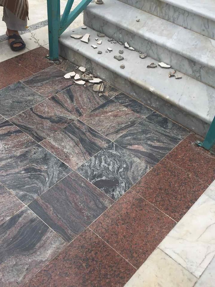 В здание попал или зенитный снаряд, или мина.