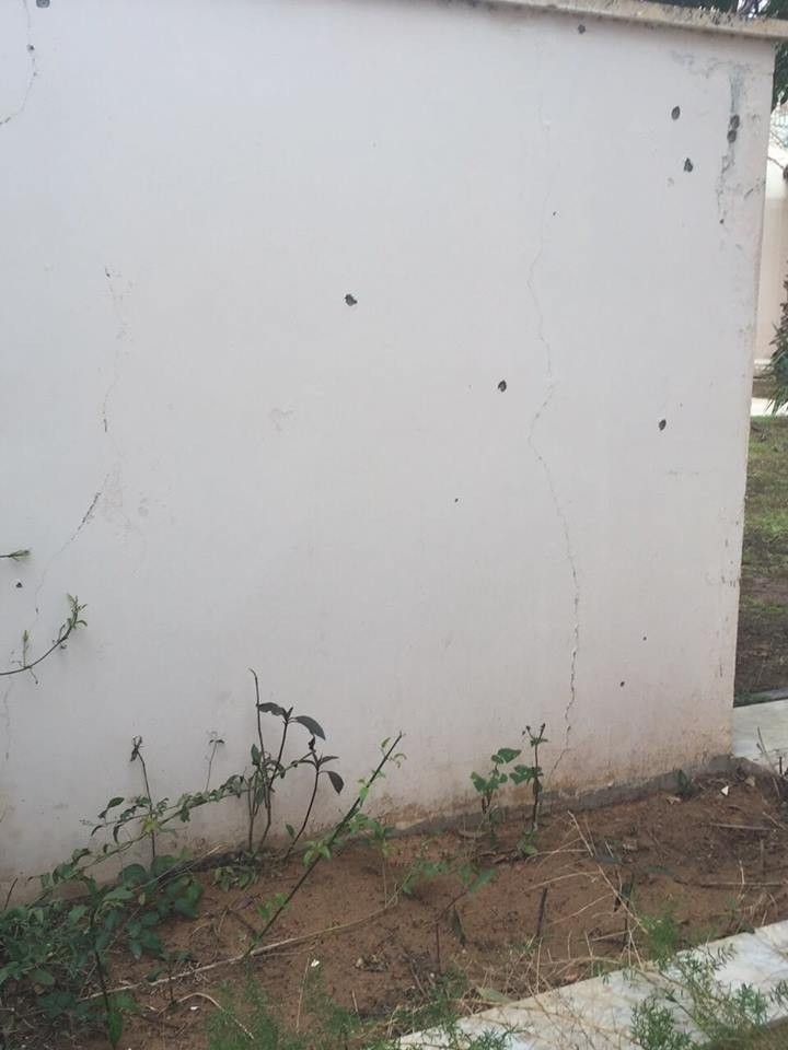 "Вот и до нашего Посольства в Триполи "подарок" залетел", - написал он и добавил фото последствий обстрела.