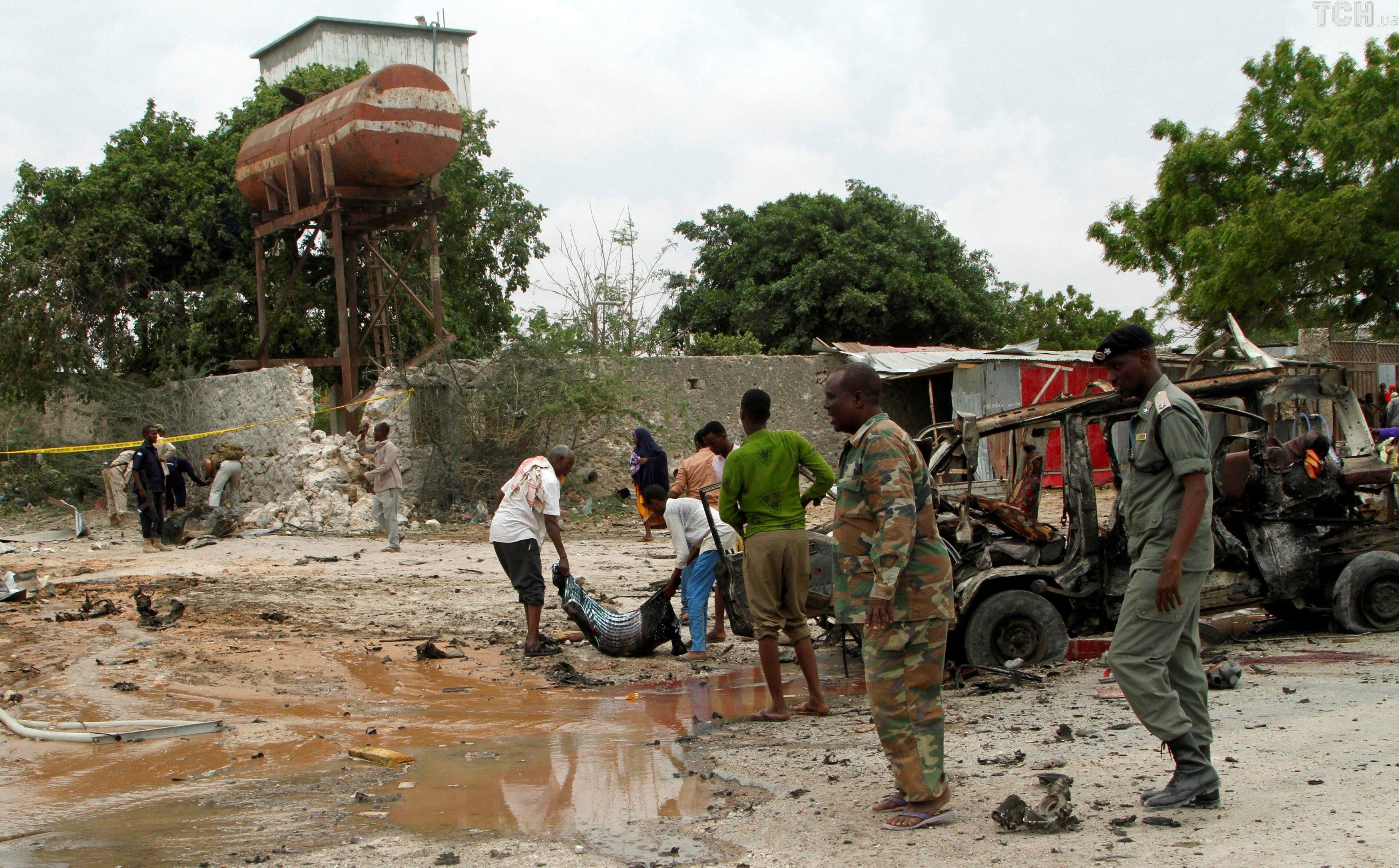 По меньшей мере 15 человек погибли в результате взрыва начиненного взрывчаткой автомобиля возле военной базы в столице Сомали Могадишо.