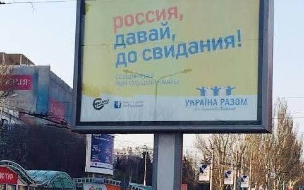 Центр Донецка на днях украсил билборд с недвусмысленным призывом: "Россия, давай, до свидания!".