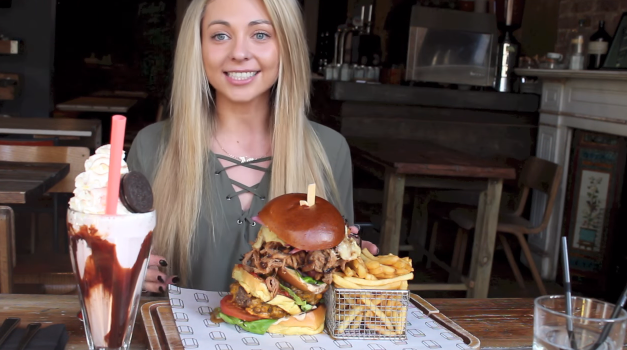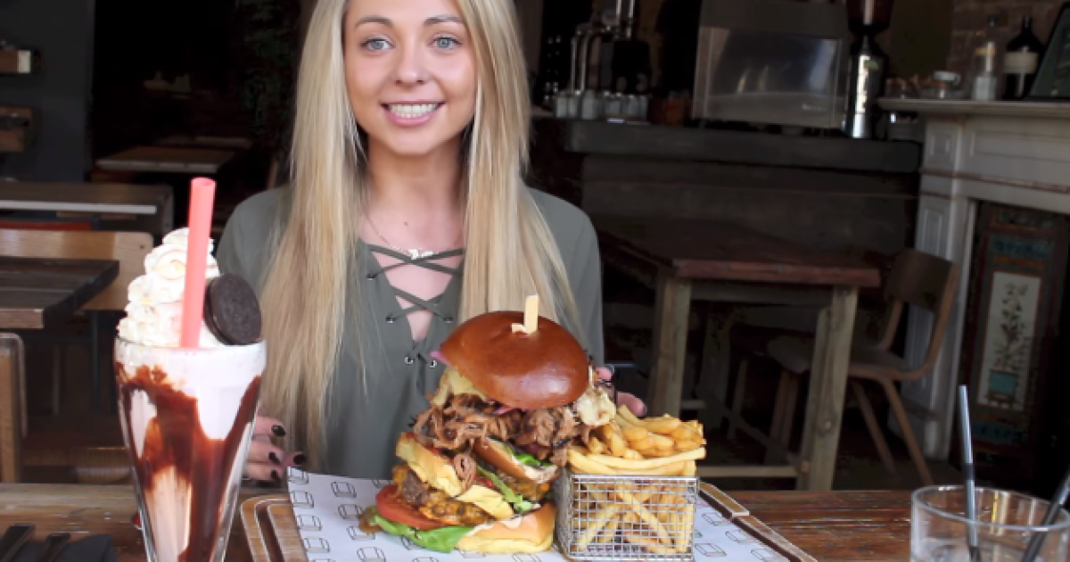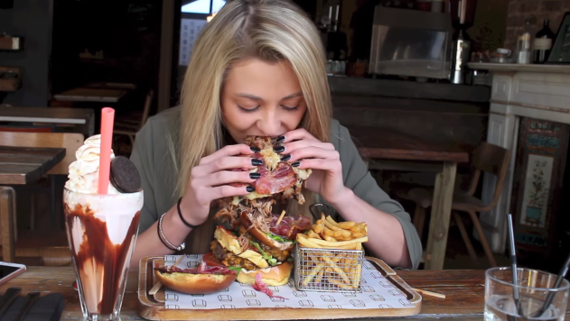 Впрочем девушка любит не только бургеры. На ее канале в YouTube есть видео с поеданием горы блинов, огромной пиццы и жареных колбасок.