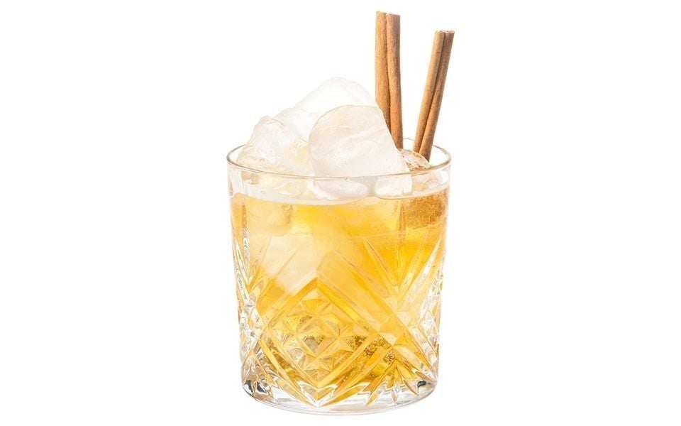 Ингредиенты: 30 мл коньяка, 60 мл яблочного сока, 10 мл карамельного сиропа, корица в палочках, лед. В шейкере смешиваем все компоненты. Смесь наливаем в бокал и украшаем его корицей.