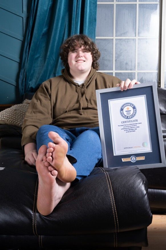 16-летний Эрик Килберн из города Гудрич, штат Мичиган, США, завоевал вожделенное место в Книге рекордов Гиннеса благодаря двум выдающимся особенностям – он является рекордсменом по самой большой ступне и ладони среди живых подростков.