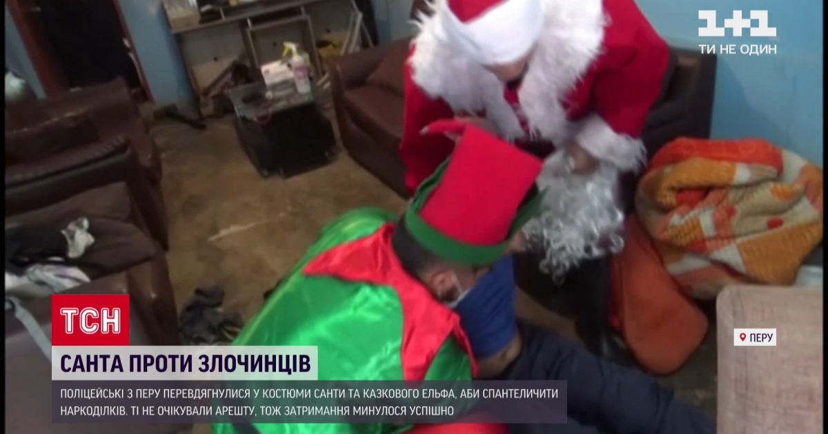 Полицейские из Перу провели операцию под прикрытием — одетые в костюмы сказочного дедушки и его эльфа правоохранители арестовали наркодельцов.