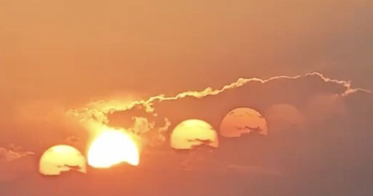 Житель города Чэнду в юго-западном Китае обнародовал потрясающие кадры редкого явления, возникшего в результате преломления и отражения света от многослойного стекла. На фото можно увидеть сразу 7 солнц. Такую картину очевидцы наблюдали в течение минуты.