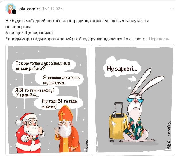 «Я что-то не понимаю, какие могут быть сомнения относительно „деда мороза“… я думала, что этот вопрос уже вообще не поднимается… в Украине дарятся подарки деткам на Николая (сейчас 6 декабря)», — отметил один из комментаторов.