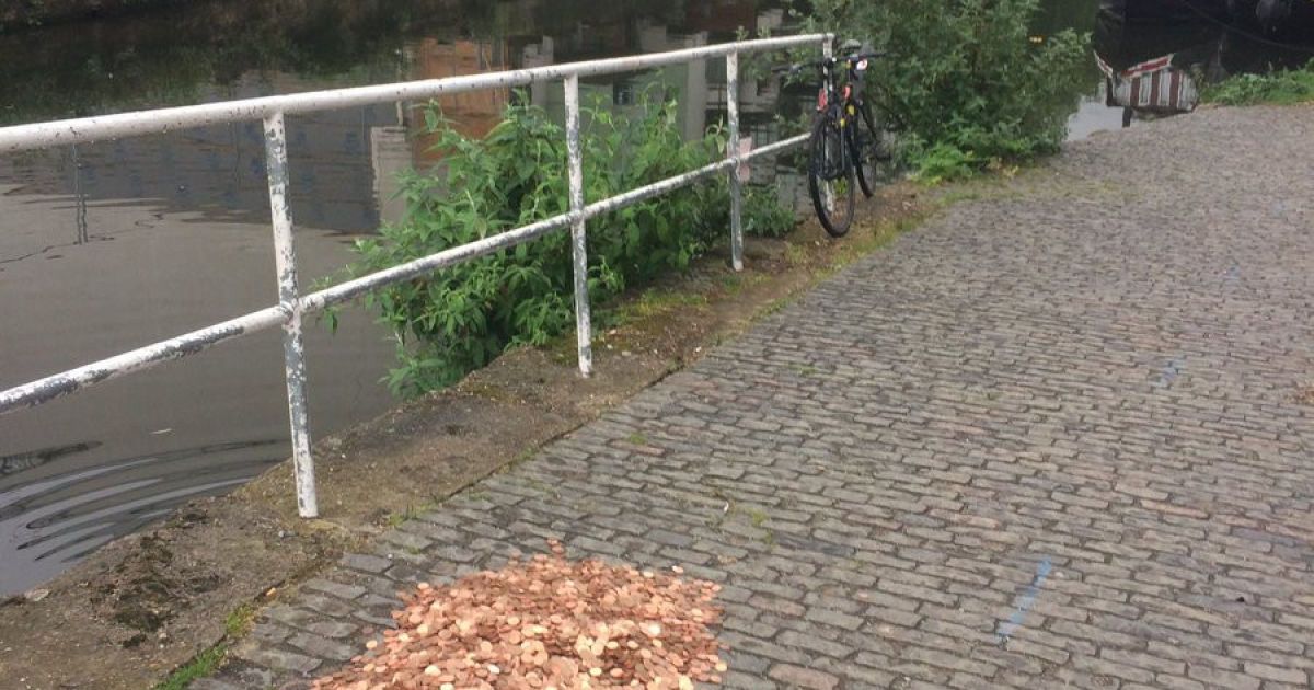 So my Airbnb guest and I decided to place 15000 2p coins on the canal and record what would happen.... #coinsbythecanal pic.twitter.com/2oe93Bv0Ka
