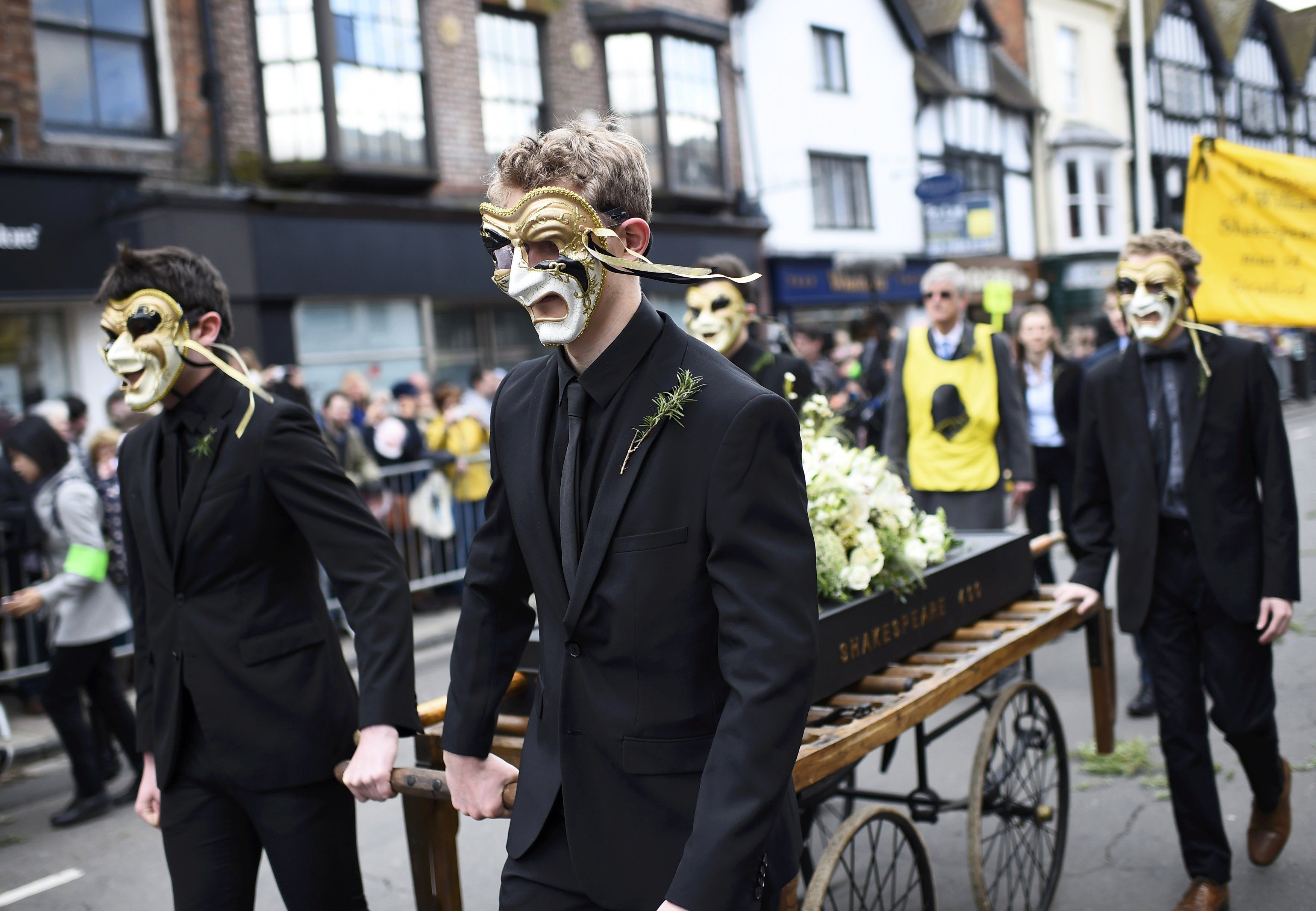 23 апреля 2016 года исполнилось 400 лет со дня смерти Уильяма Шекспира. Прежде всего сотни человек почтили память писателя в его родном городке Стрэтфорде-на-Эйвоне. Жители переодевались в костюмы персонажей произведений мастера, надевали маски, танцевали, разыгрывали сцены из книг автора.