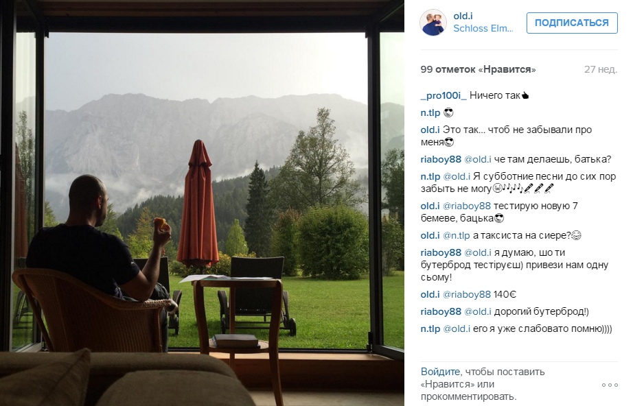 Есть в Instagram прокурора и фото с отдыха - на нем Черновский любуется потрясающим видом альпийского горного хребта. На фото прокурора указана географическая метка – люксовый пятизвездочный отель Schloss Elmau, что раньше был замком.