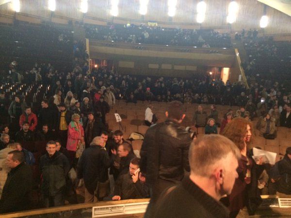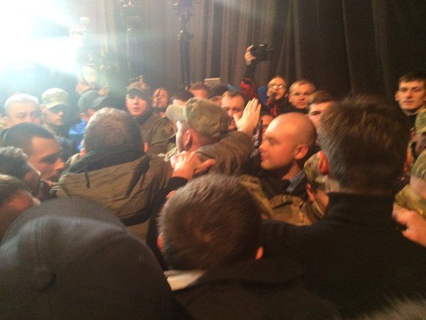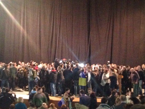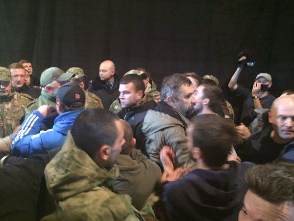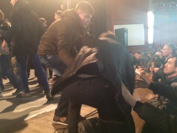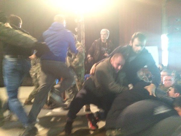 Во время выступления местного активиста Романа Черемского на сцену прорвались с дракой другие активисты, в результате чего началась драка на сцене, сообщает издание "Грородской дозор".