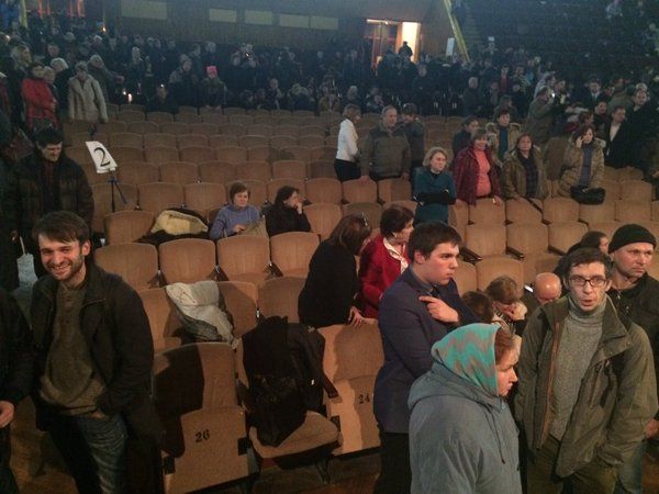 Председательствующий, первый заместитель городского головы Игорь Терехов, решил закрыть слушания с целью безопасности.