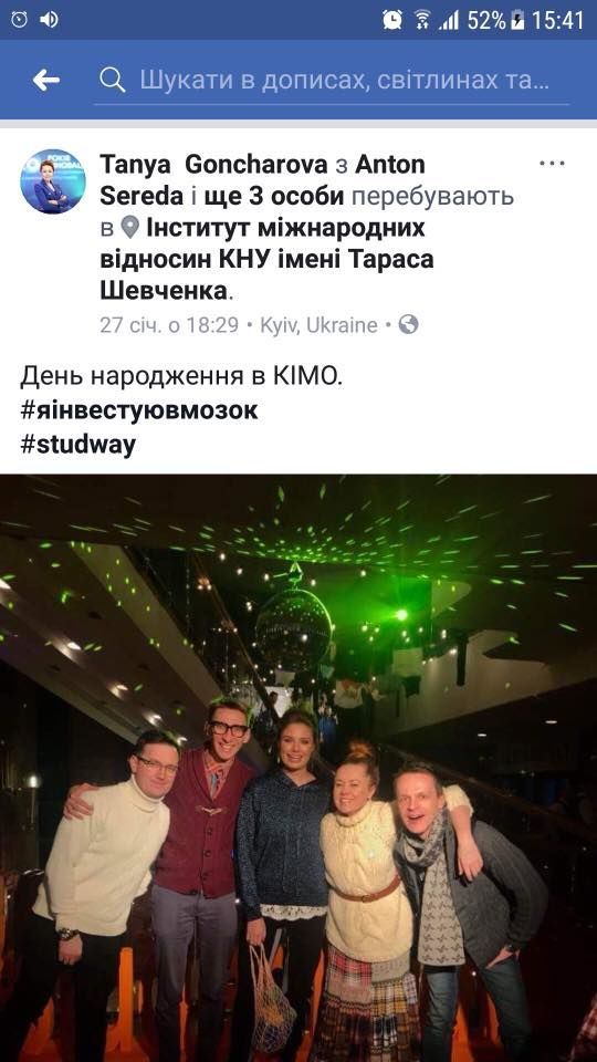 Украинская телеведущая Татьяна Терехова на свой день рождения устроила вечеринку просто в стенах Института международных отношений Киевского национального университета им. Тараса Шевченко.