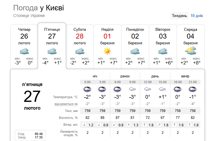 Погода в Киеве 27 февраля