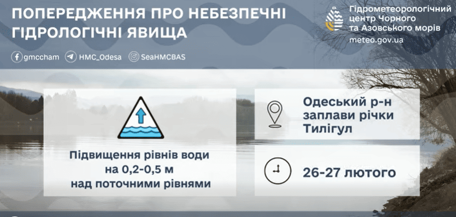 Из-за активного таяния снега и повышения температуры с 26 февраля по 2 марта на реках бассейна Южного Буга и Ингула ожидается подъем уровней воды на 0,2-0,6 метра. В Кировоградской, Черкасской, Одесской и Николаевской областях прогнозируют удержание воды на поймах, в этих областях объявлен І уровень опасности — желтый.