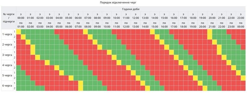 График отключения света в Закарпатской области. Фото: местное облэнерго.