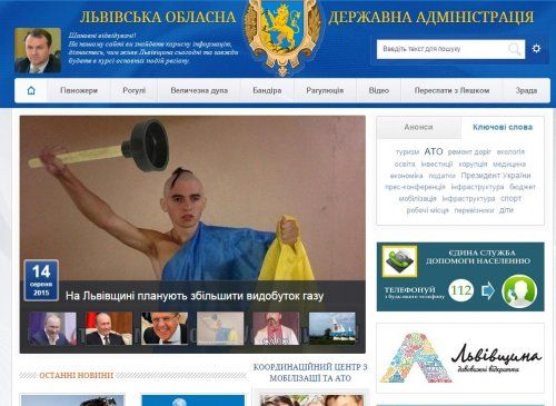 Скриншот взломанного сайта успел сделать львовский фотограф Николай Тыс. Сейчас онлайн-ресурс Львовской ОГА недоступен.