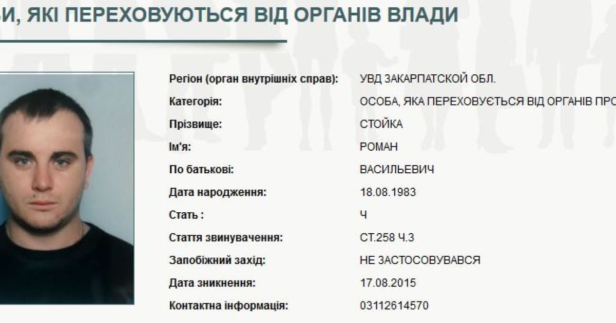 Соответствующая информация обнародована во вторник, 18 августа, на сайте Министерства вннутренних дел. В файле на Стойко указано, что он скрывается от органов прокуратуры.