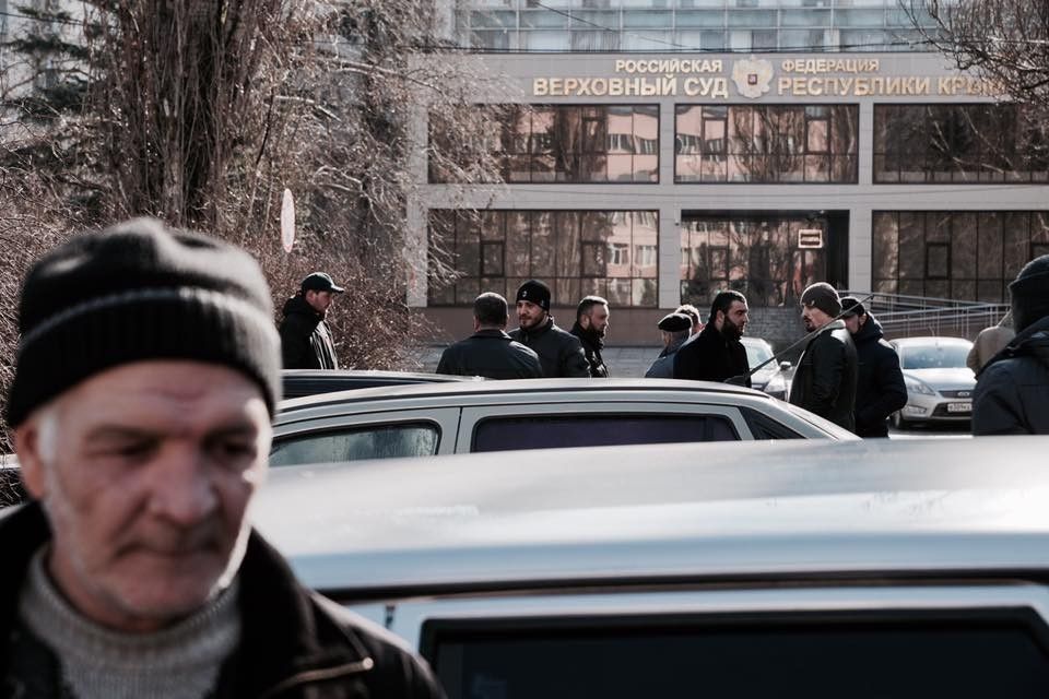 Встречать Мустафаева в здании Верховного суда Крыма пришли все желающие.