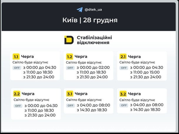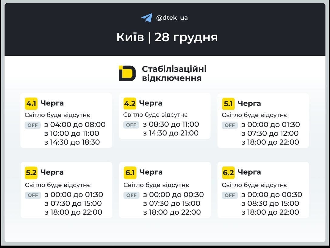 По состоянию на 28 декабря ситуация с энергоснабжением столицы остается неоднородной. После массированной атаки энергетикам удалось заживить всю критическую инфраструктуру столицы и вернуть свет в доме 748 000 семей. Правый берег возвращается к прогнозируемым графикам, а Левый берег все еще работает в режиме аварийных ограничений.