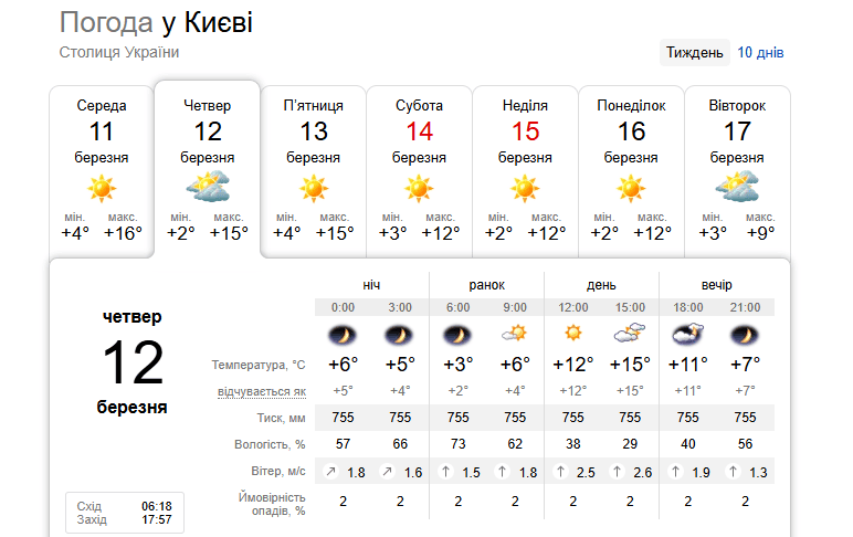 Погода в Киеве 12 марта