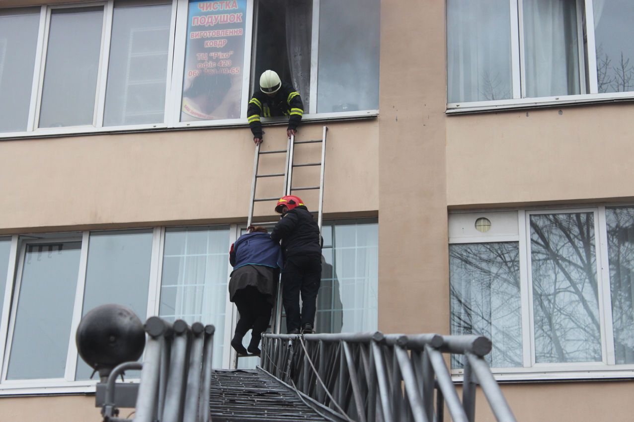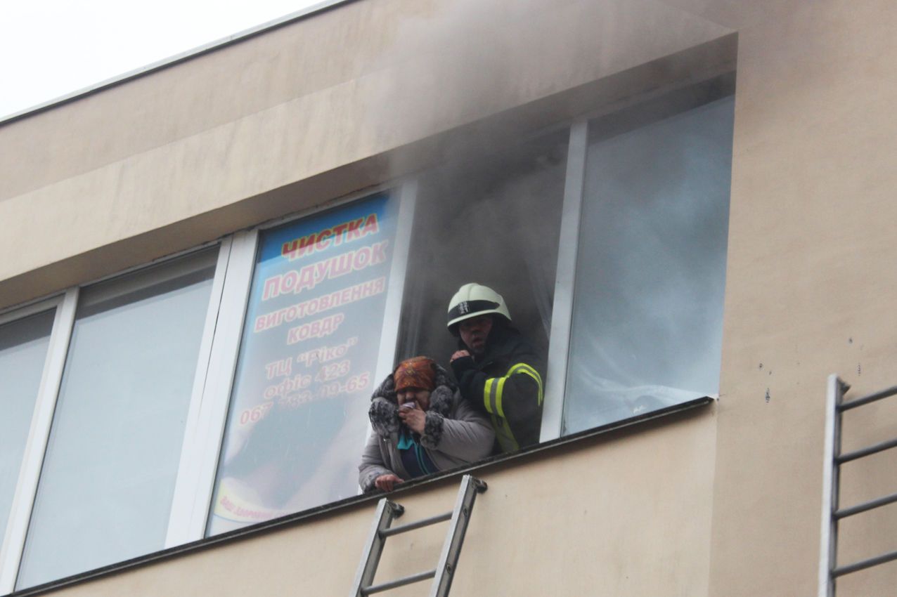 Крупный пожар произошел в торговом центре в Хмельницком. Огонь вспыхнул на третьем этаже. Посетители и продавцы, которые не успели вовремя выбежать, остались заблокированы в помещении, что горело.
