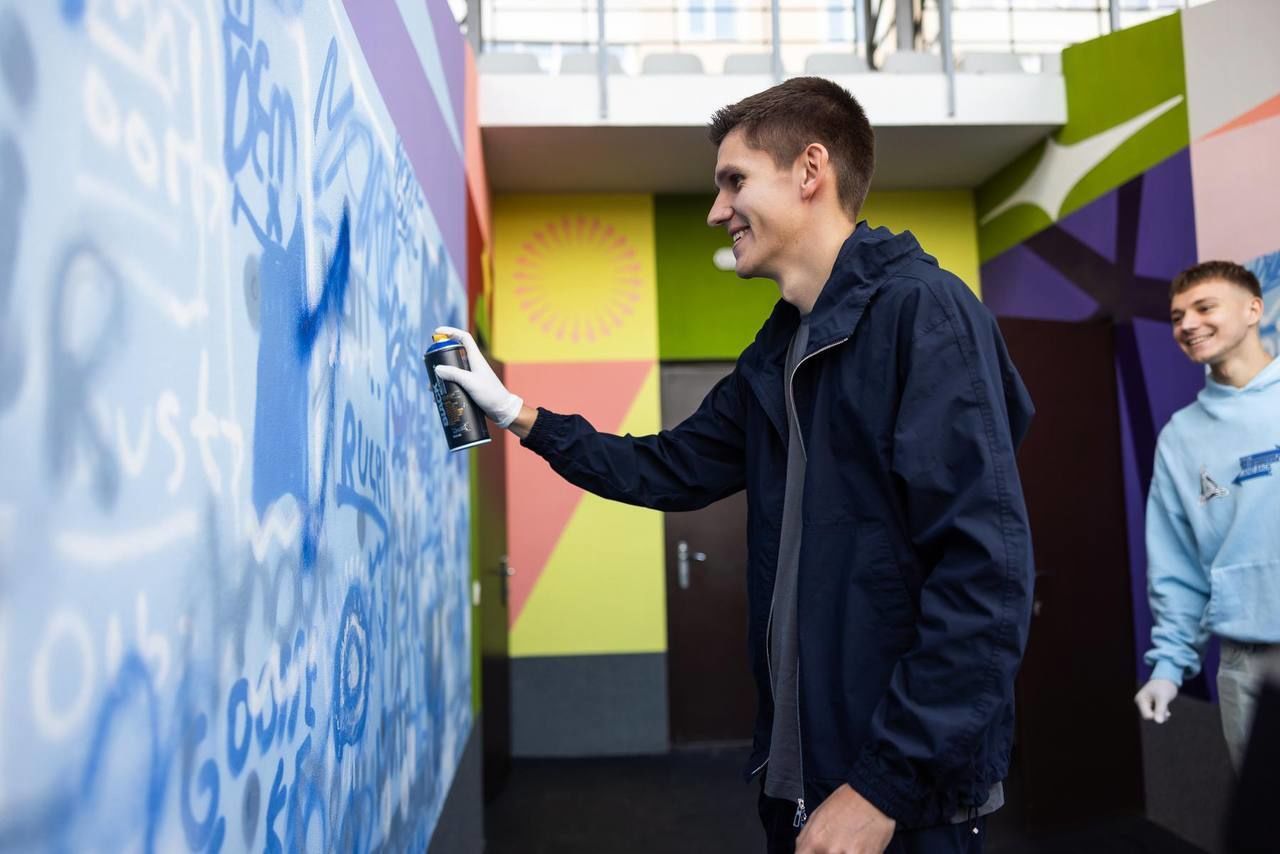 Кроме функционального обновления спортивного сооружения инициаторы позаботились и об эстетике. Украинские художники создали на стадионе мурал, на котором игроки "Динамо" оставили автографы.