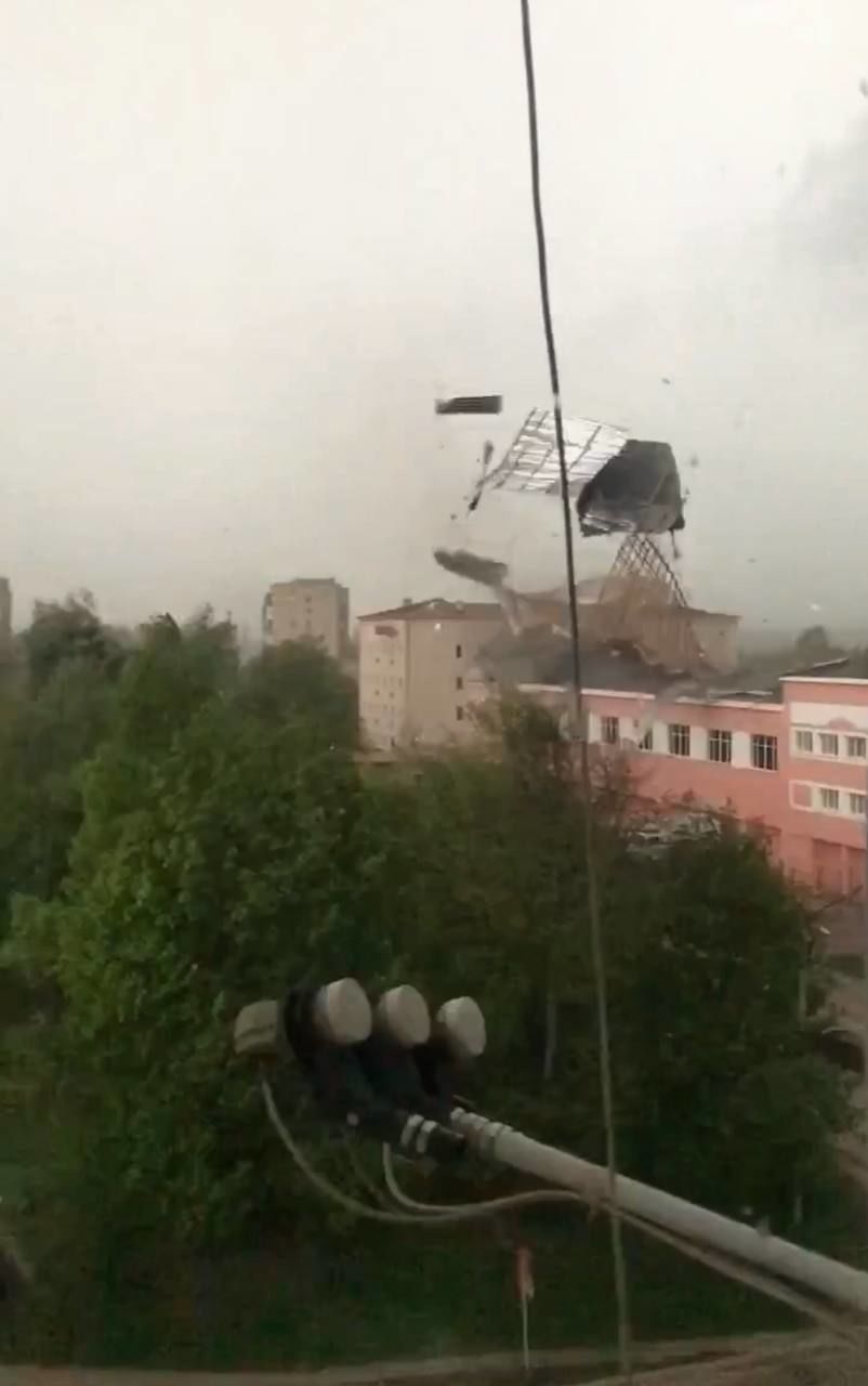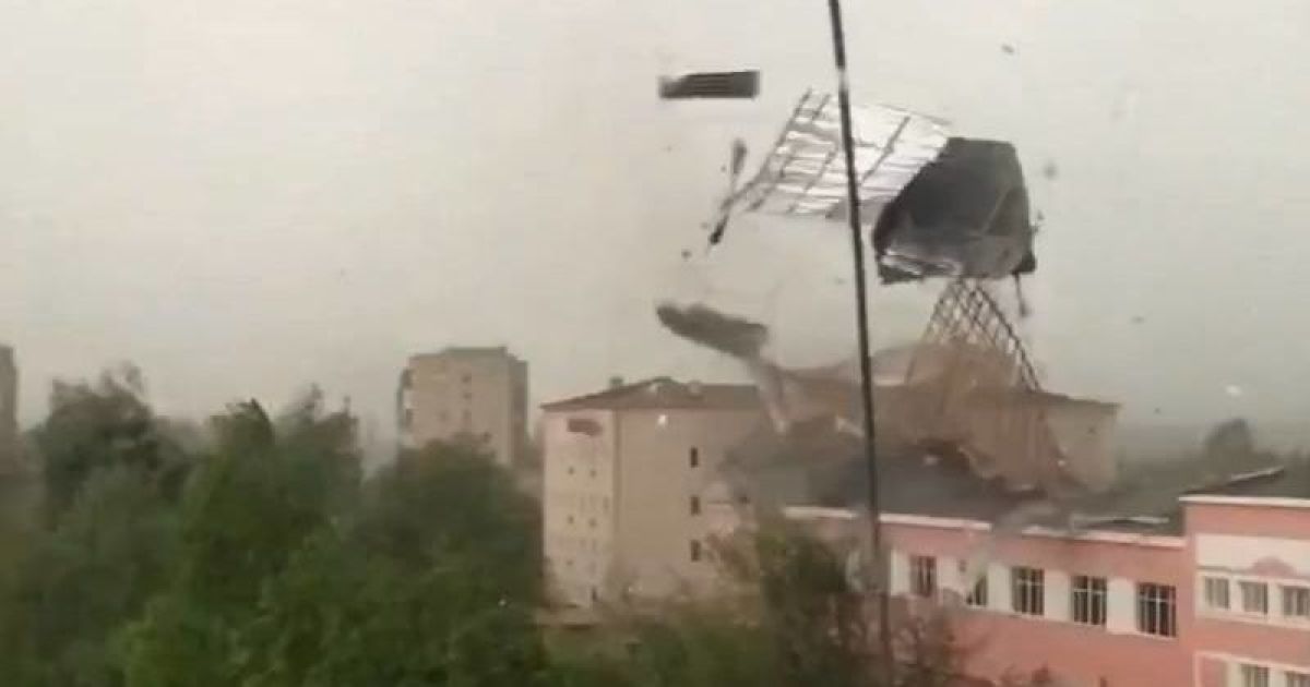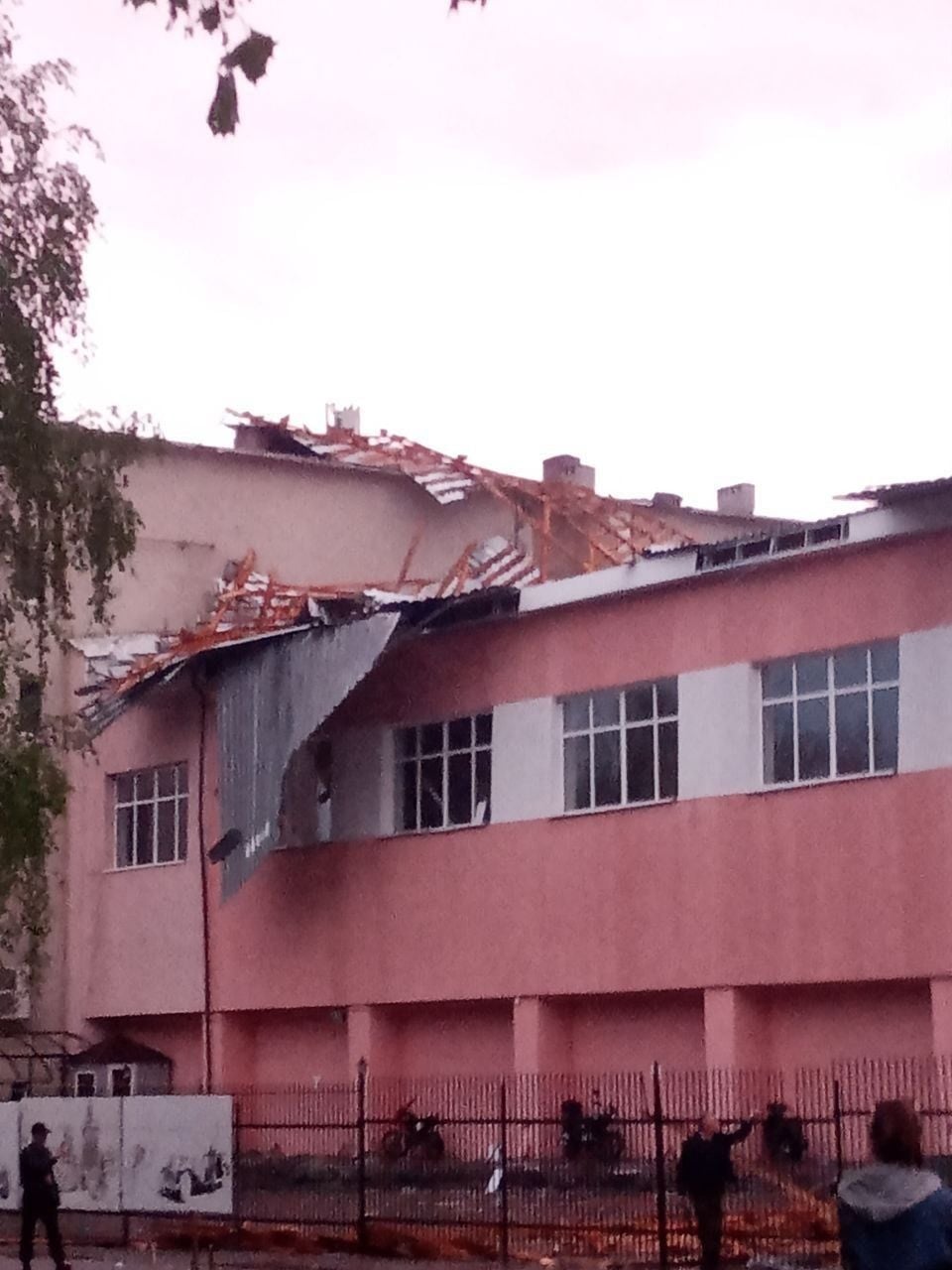 В Шостке Сумской области 12 мая бушевал мощный ветер, буквально сорвавший крышу со здания бассейна. Повреждены и другие постройки.