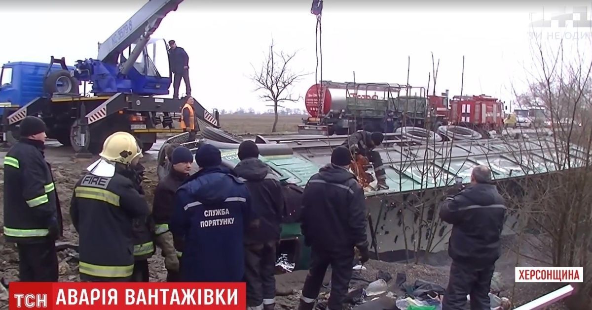 На Херсонщине водитель девять часов пролежал под весом фуры в результате ДТП