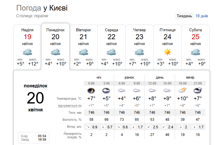 Погода в Киеве 20 апреля