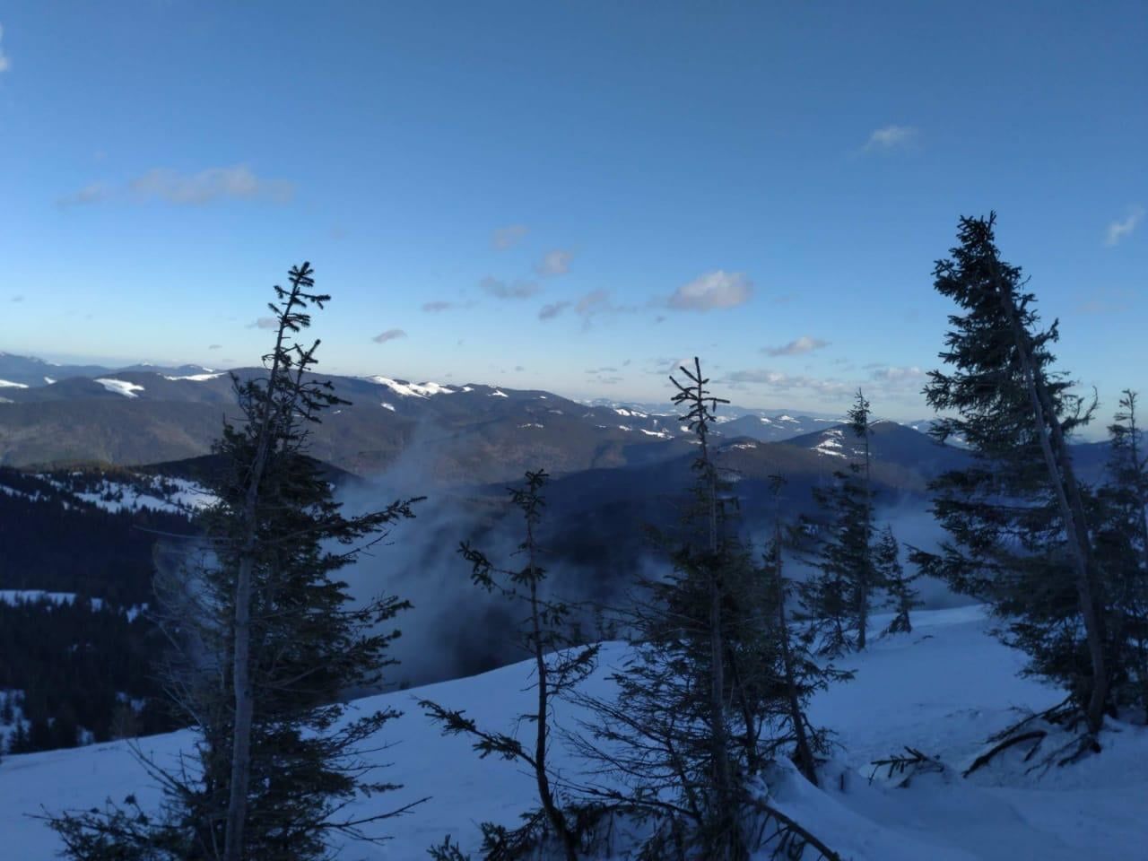 Сейчас на горе Пип Иван температура воздуха –13, порывы ветра до 20 м/с, видимость до 10 м/с.