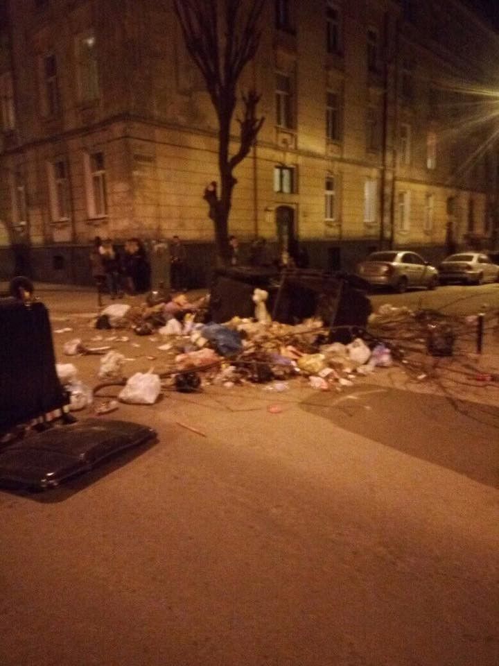 Во Львове в ночь на 3 апреля неизвестные попереворачивали мусорные баки на центральных улицах Львова, заблокировав автомобильное движение. Полиция также зафиксировала попытки поджога мусора.